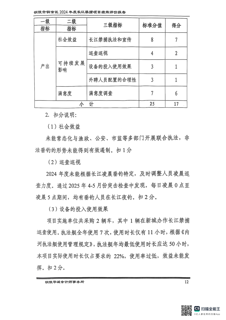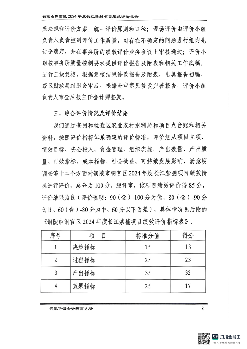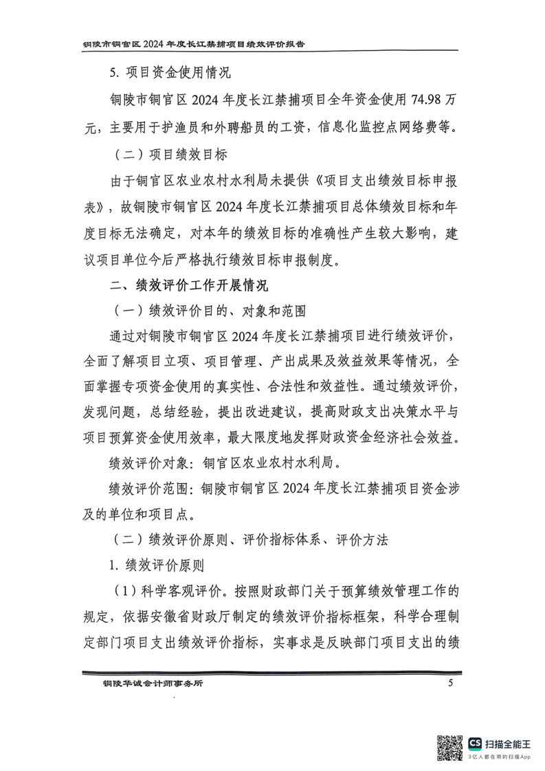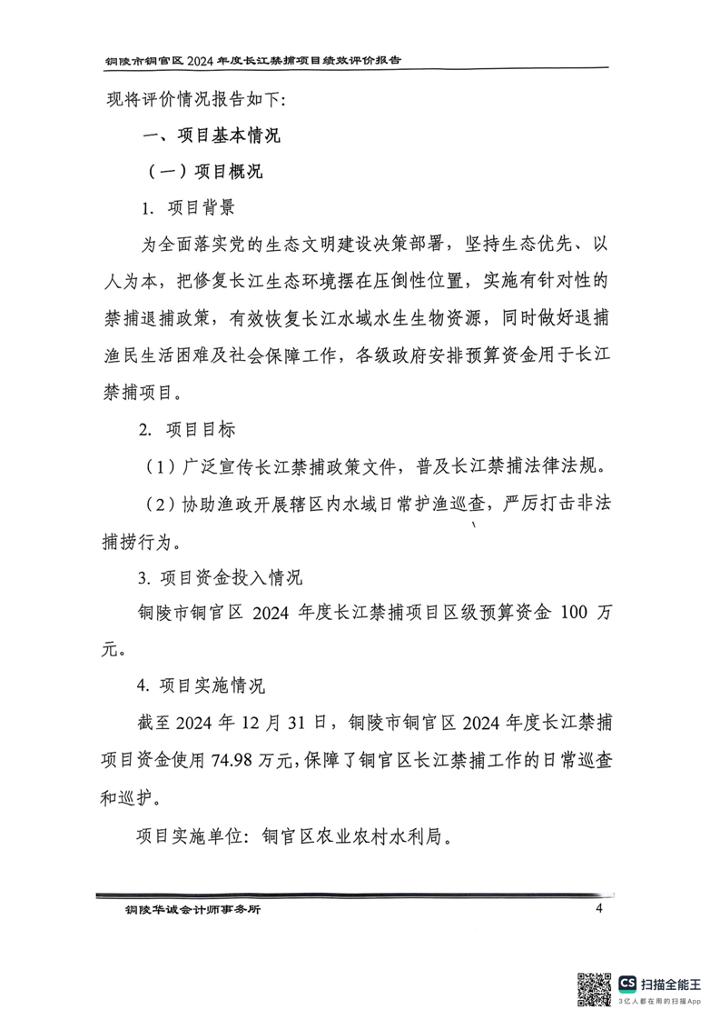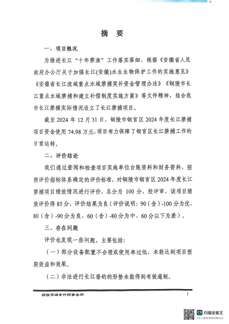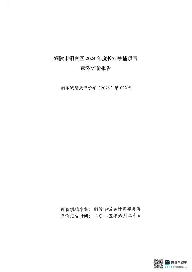 铜陵市铜官区2024年度长江禁捕项目绩效评价报告-铜官区人民政府
