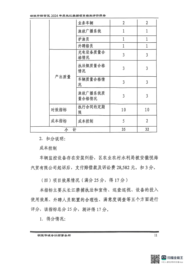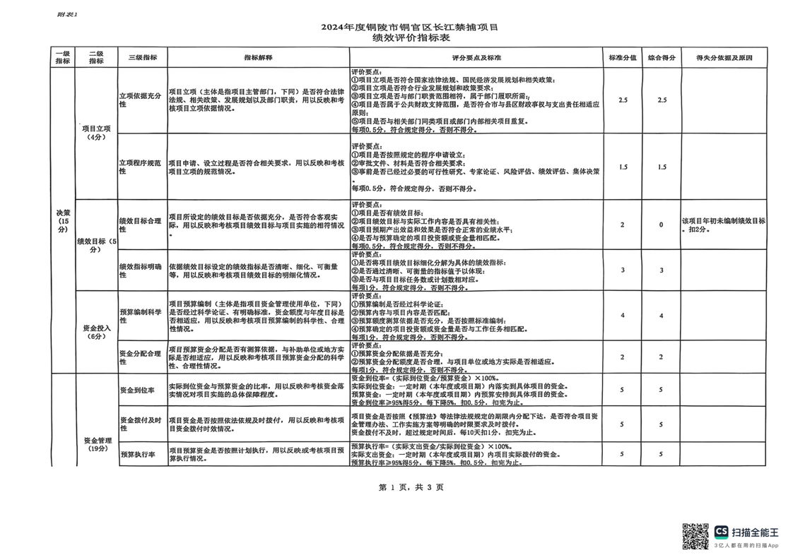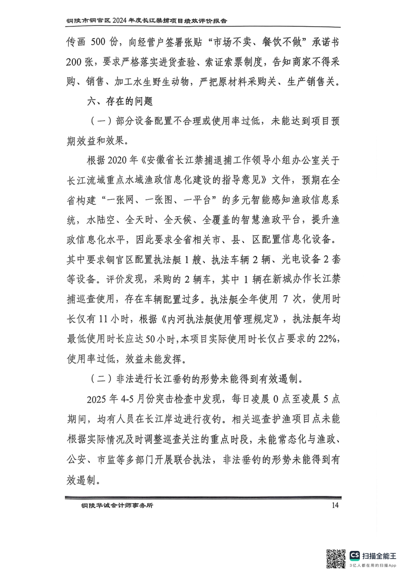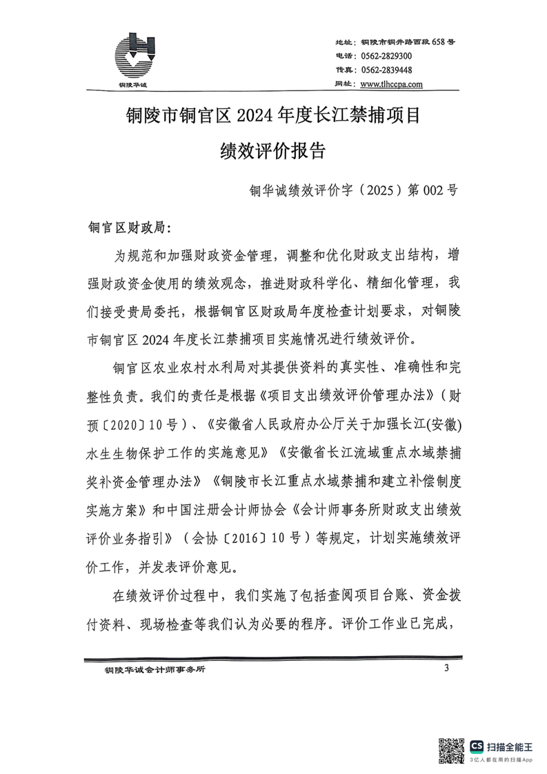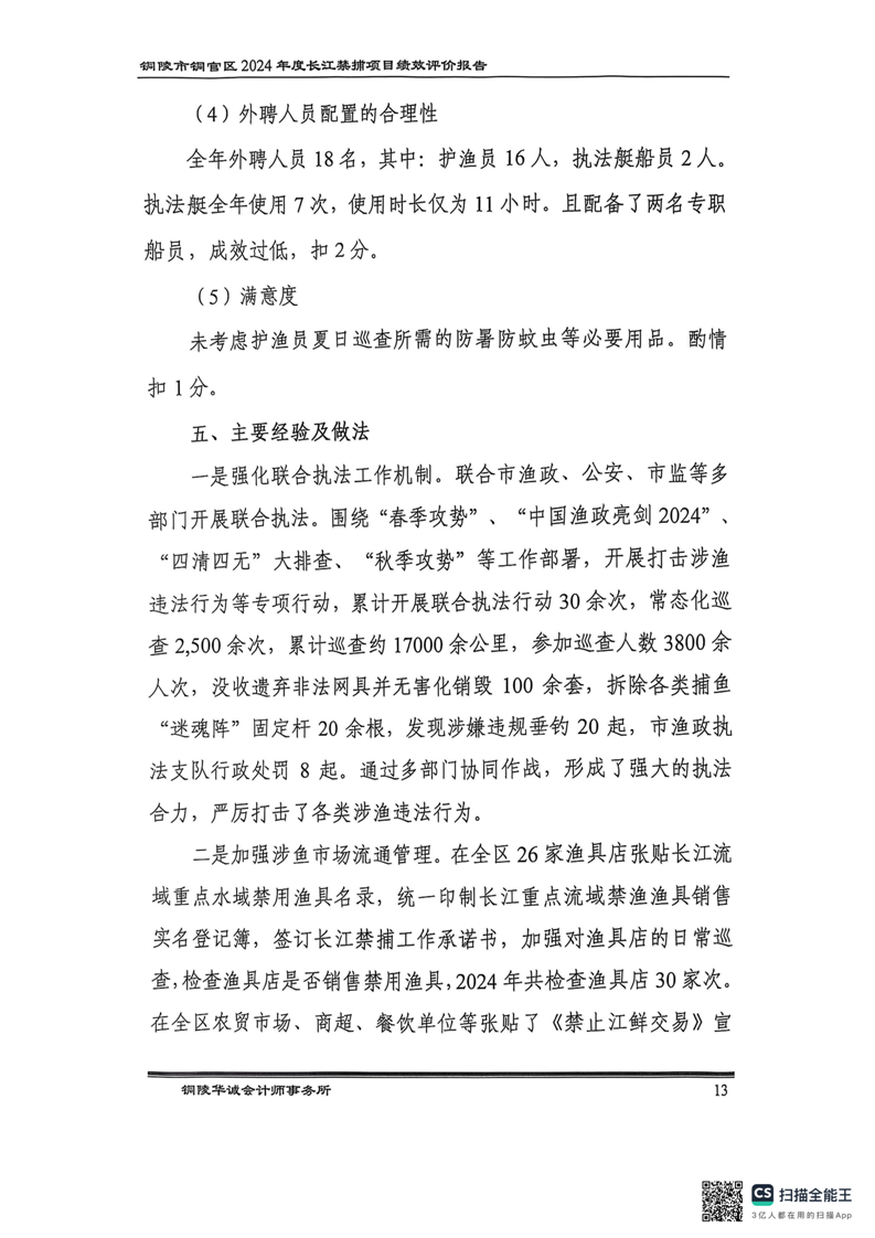 铜陵市铜官区2024年度长江禁捕项目绩效评价报告-铜官区人民政府
