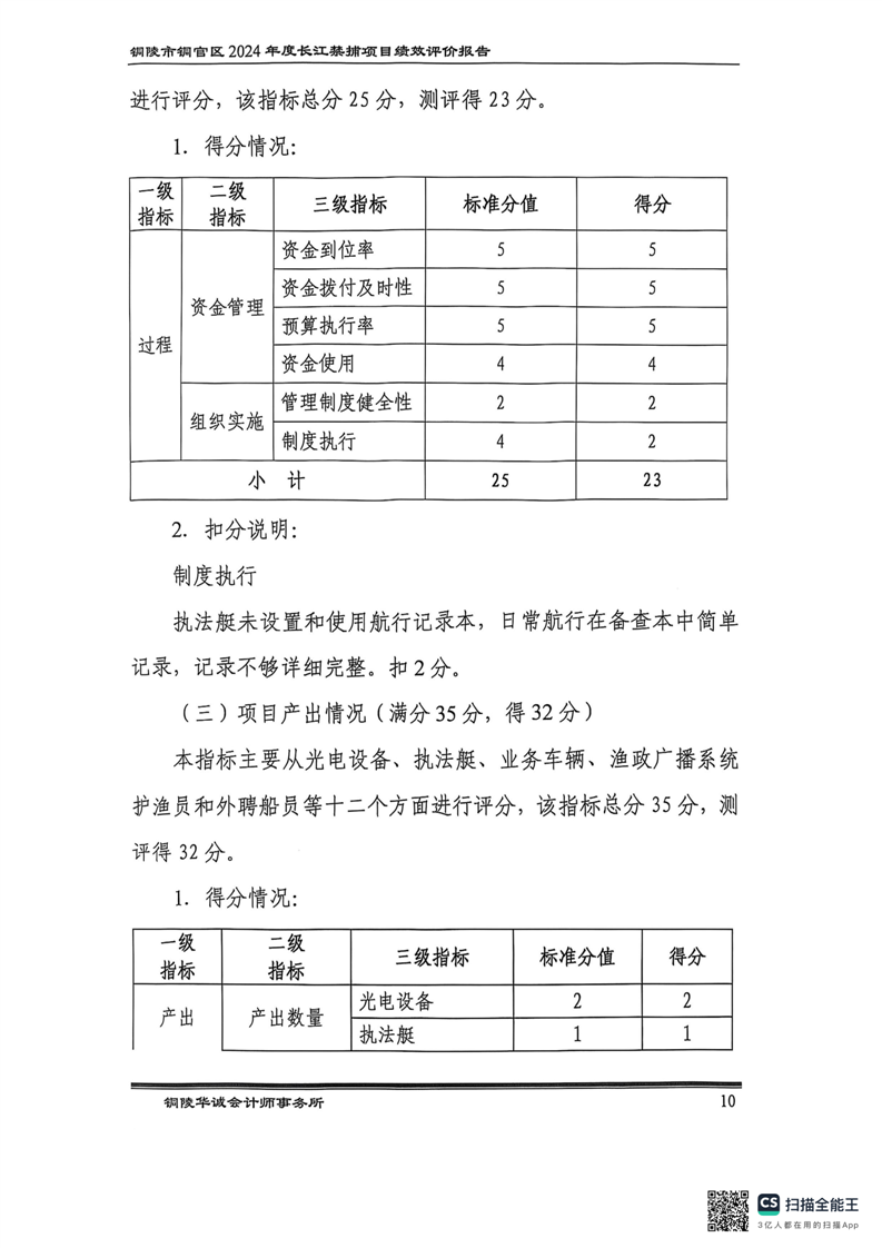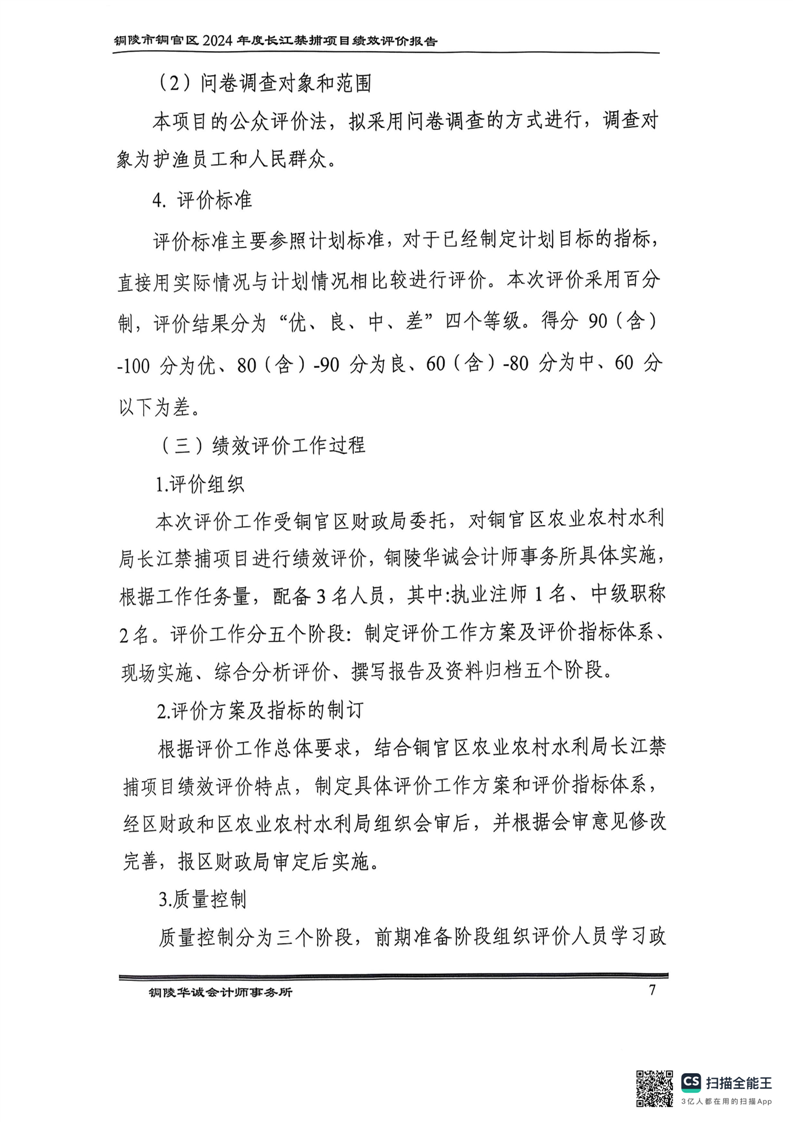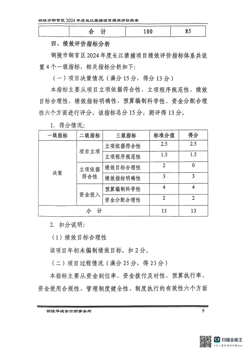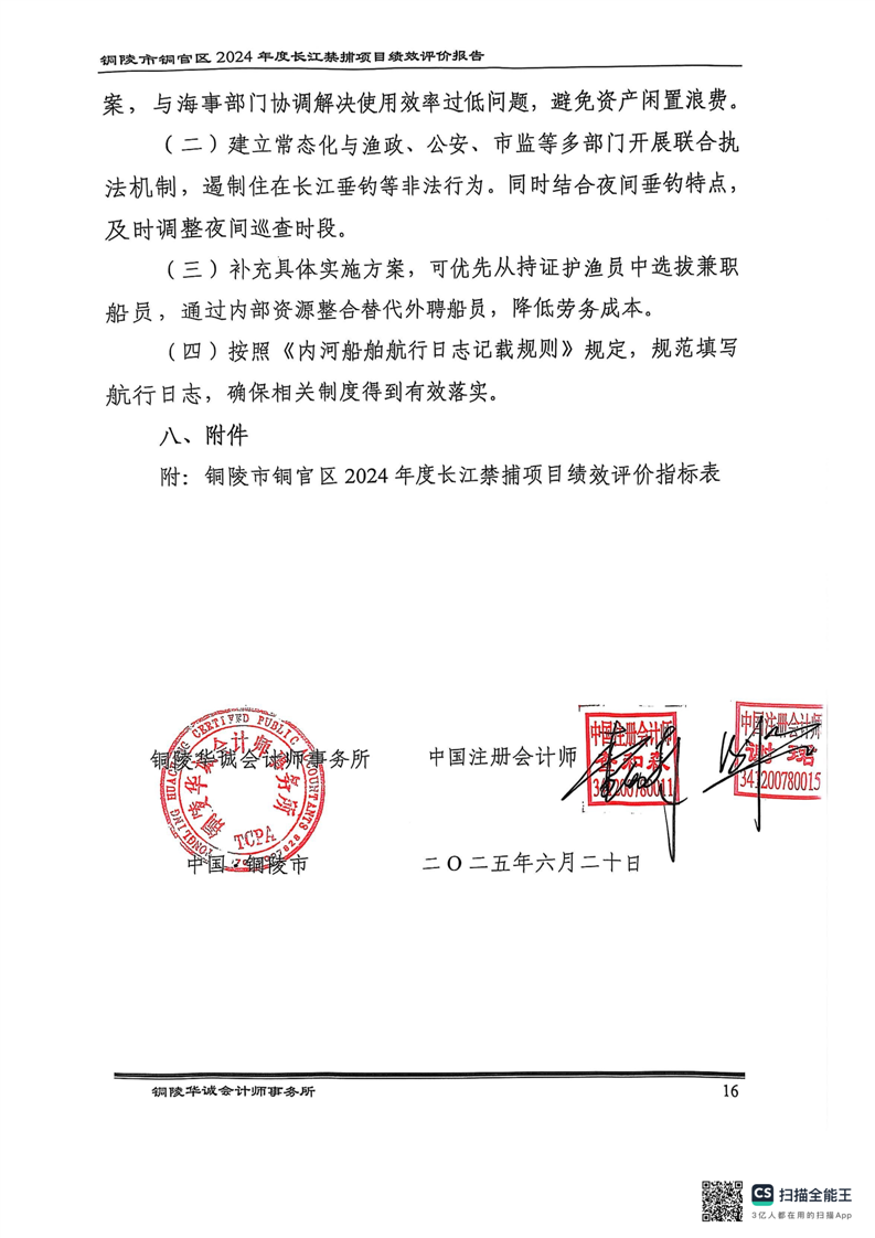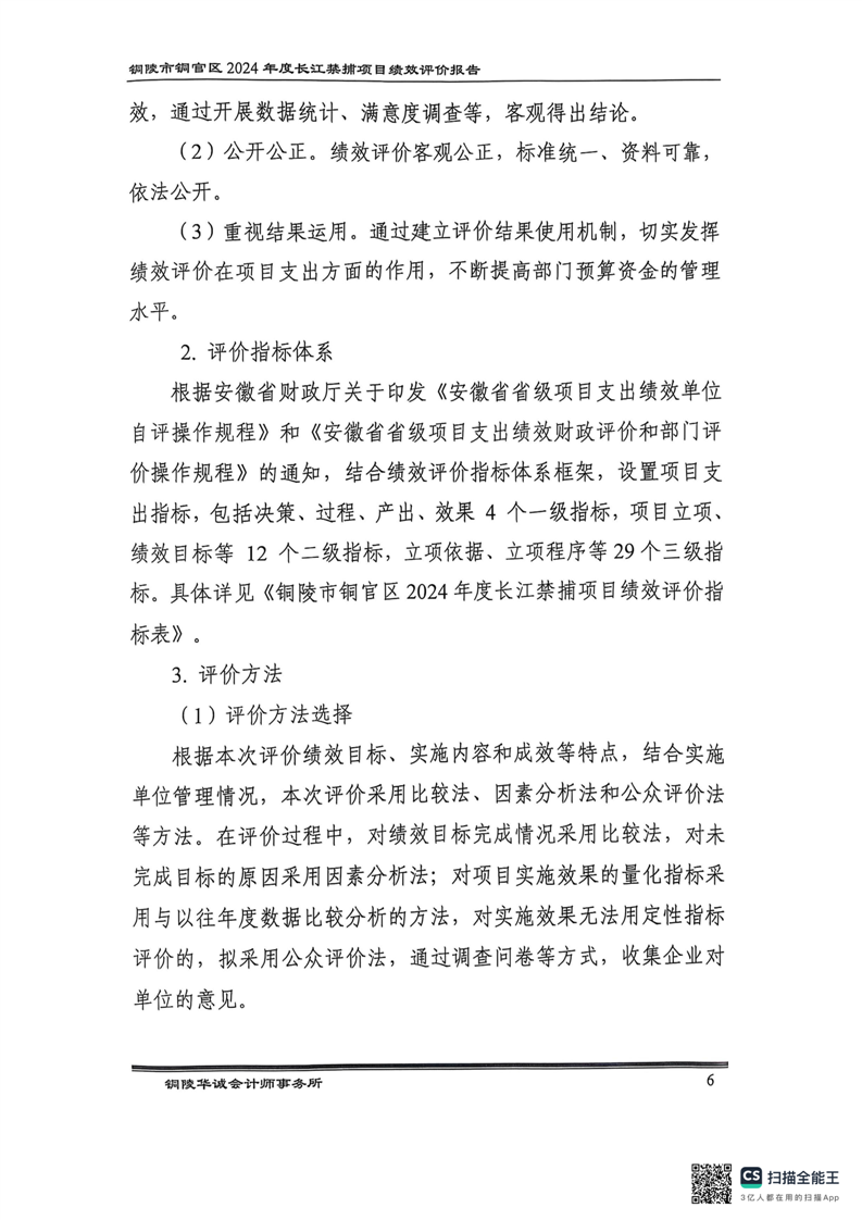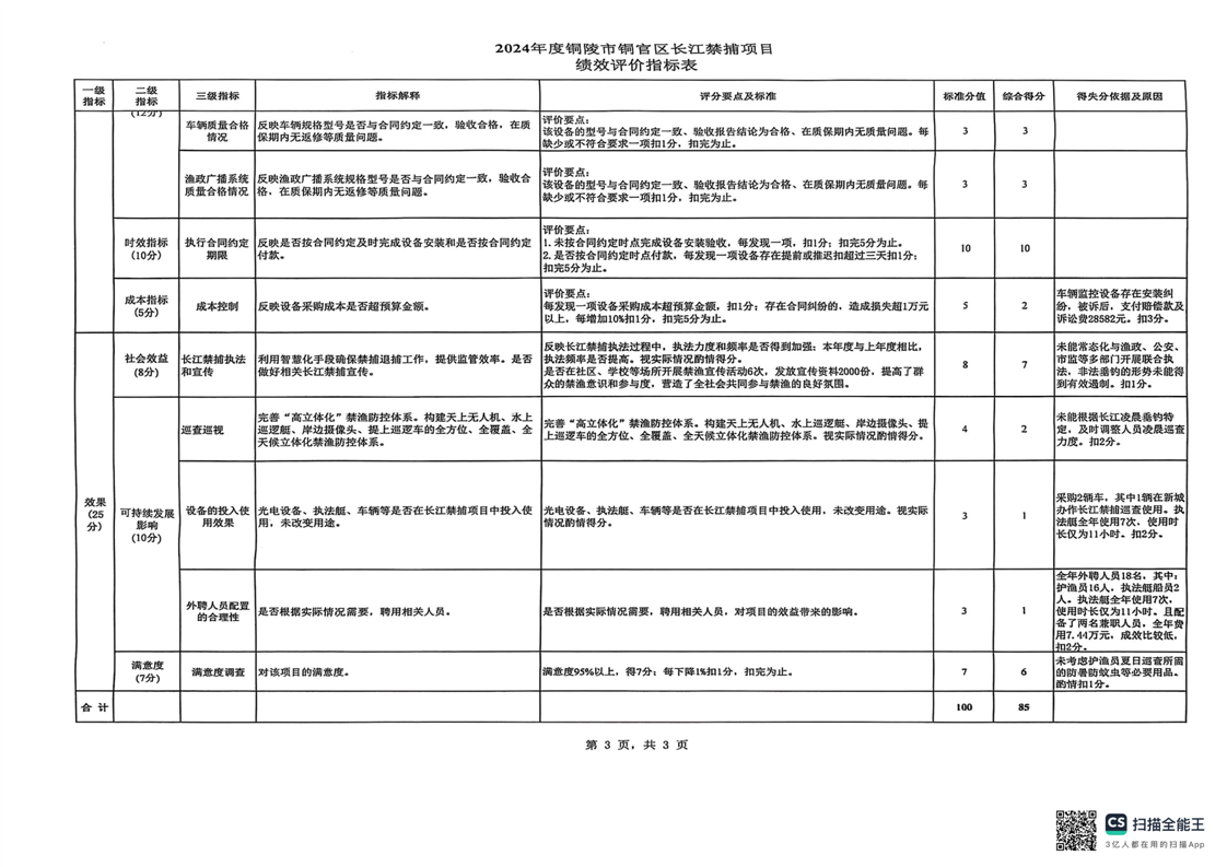 铜陵市铜官区2024年度长江禁捕项目绩效评价报告-铜官区人民政府