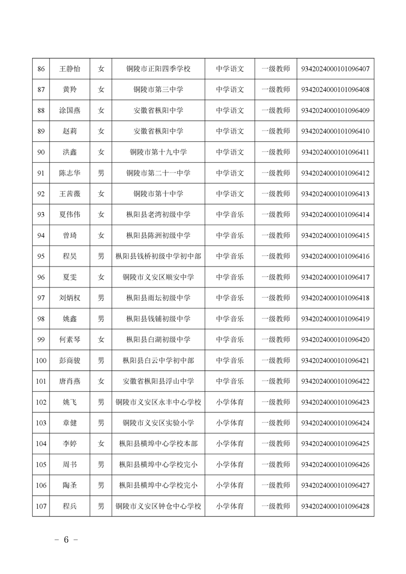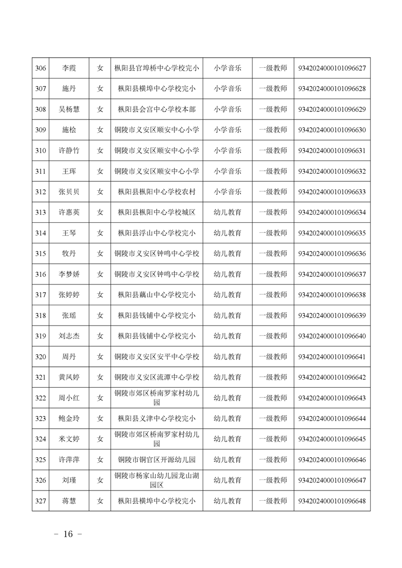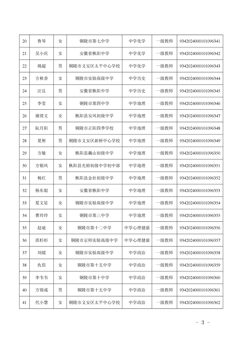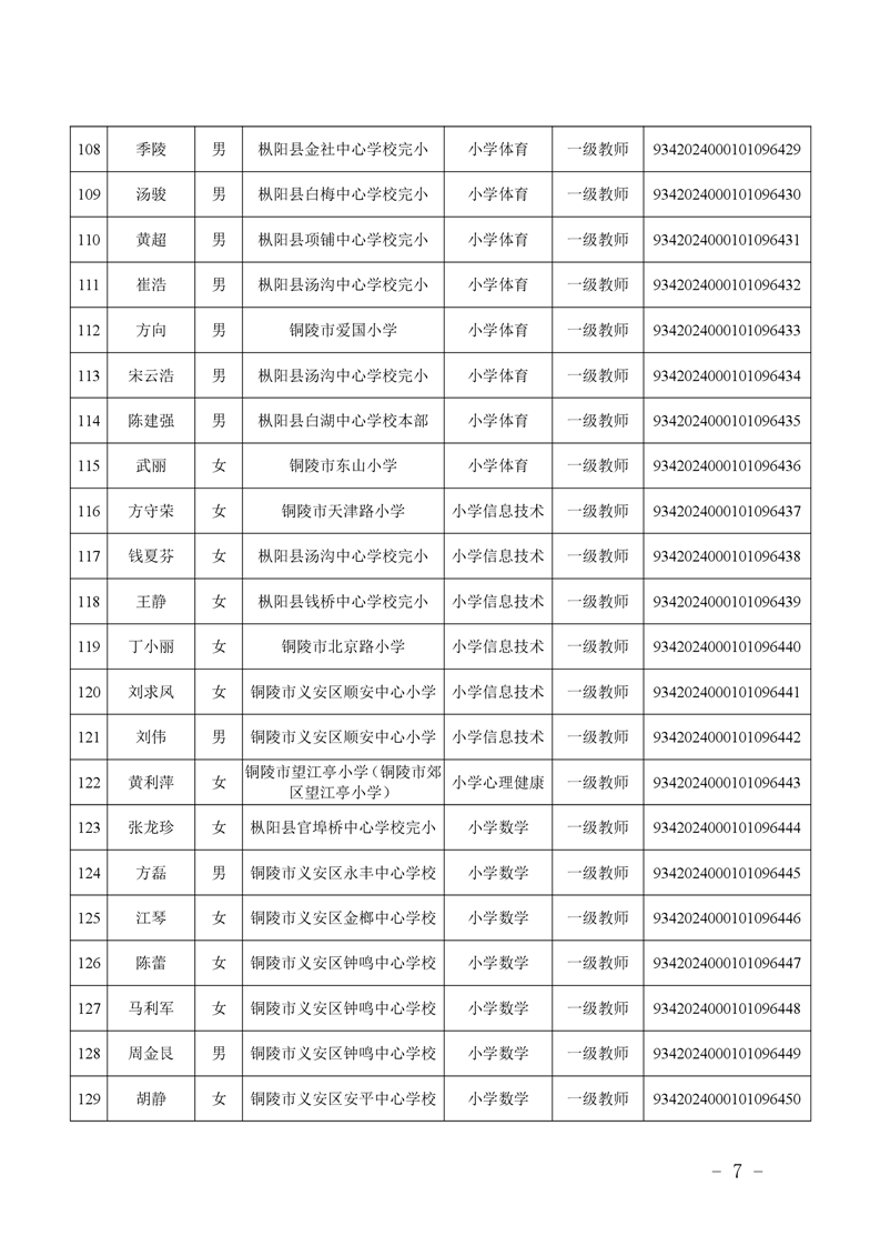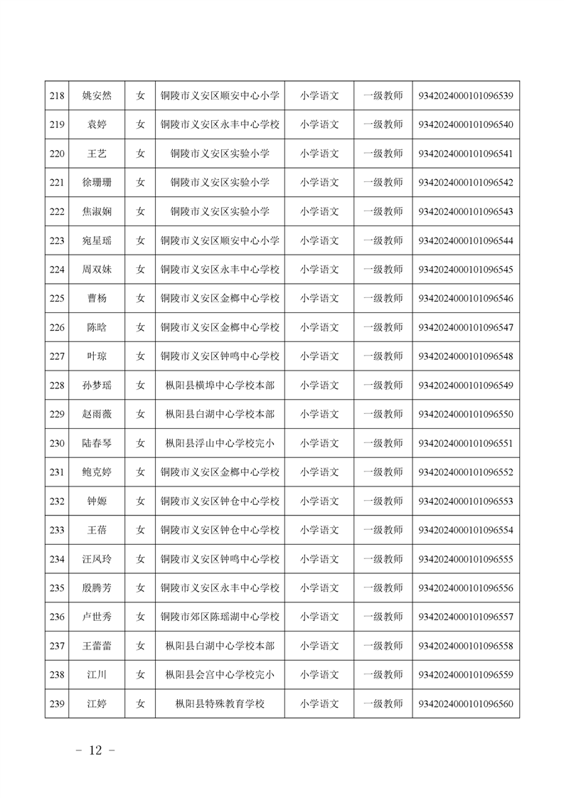 2024年度中小学教师系列中级专业技术资格评审结果-铜官区人民政府