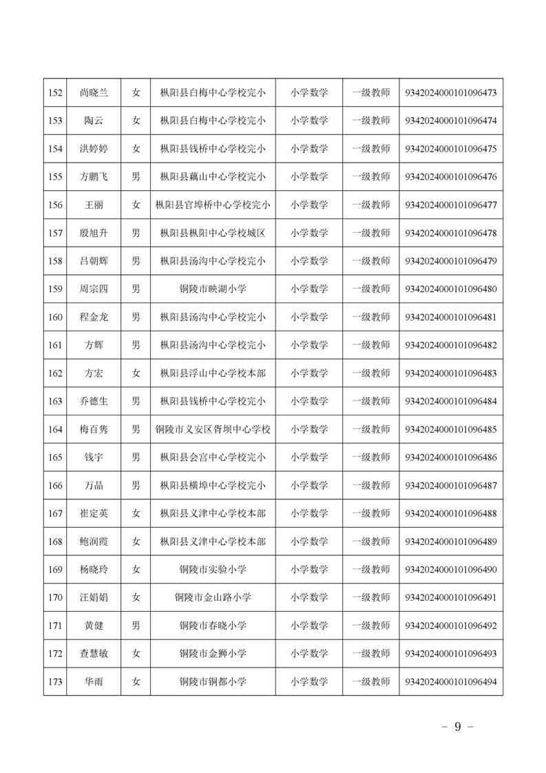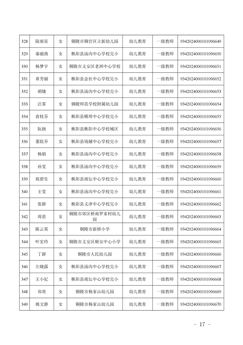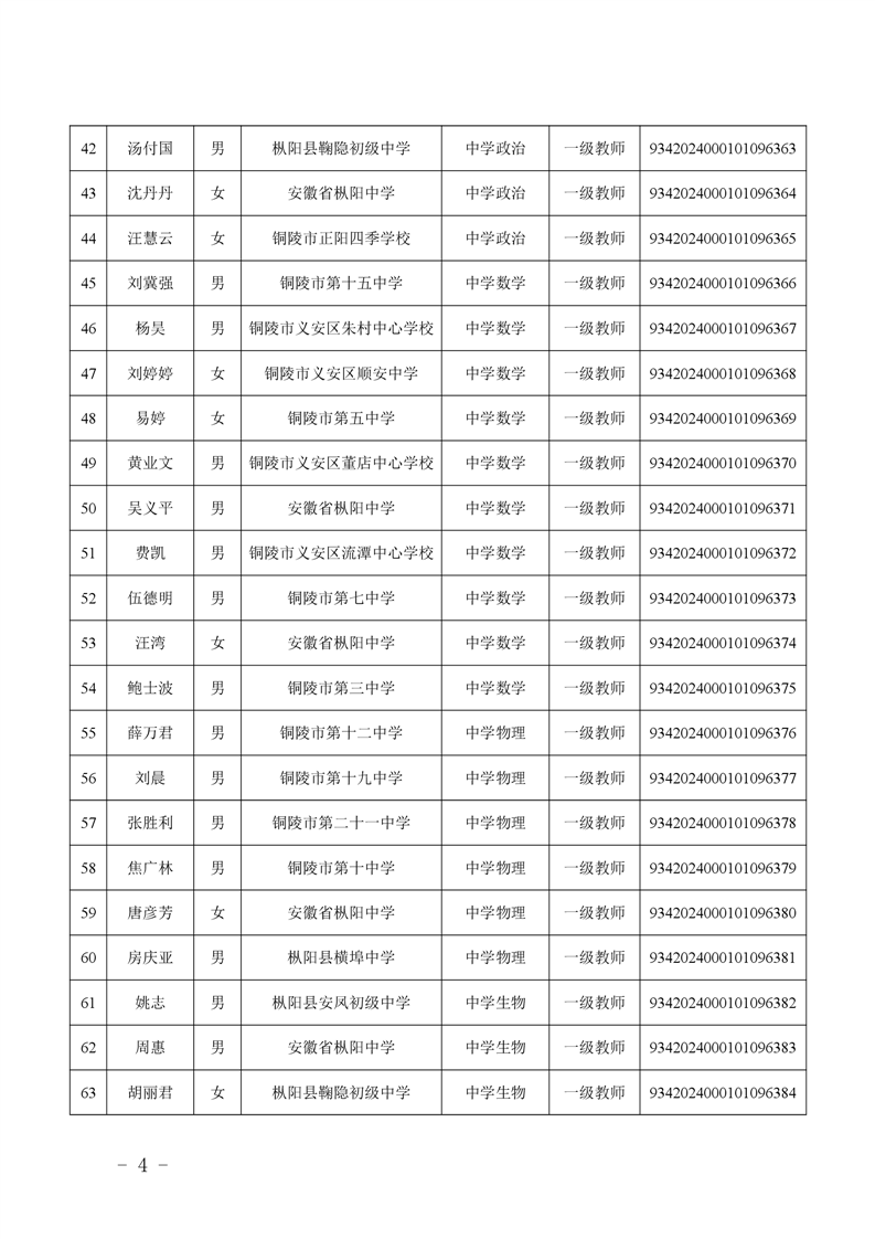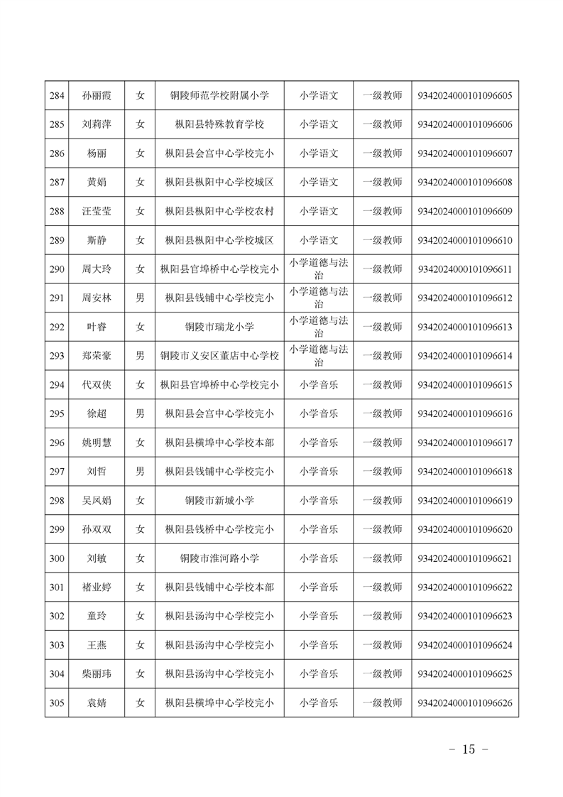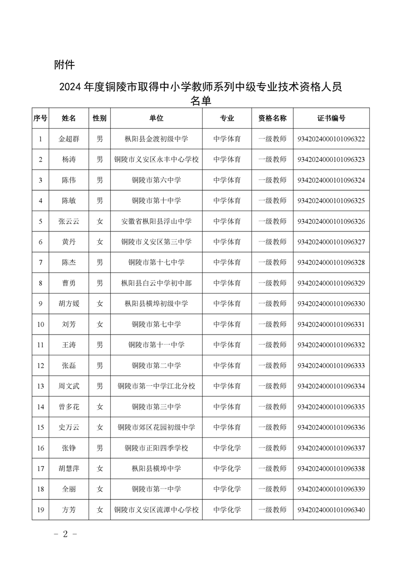 2024年度中小学教师系列中级专业技术资格评审结果-铜官区人民政府