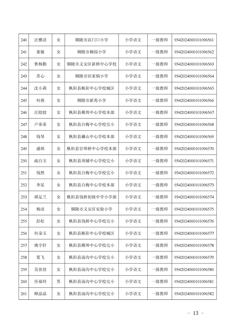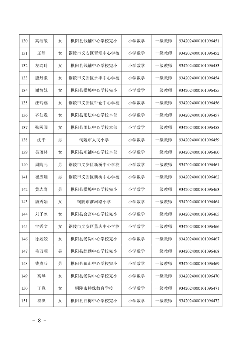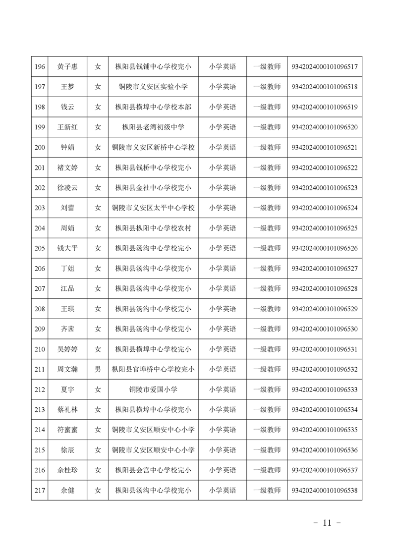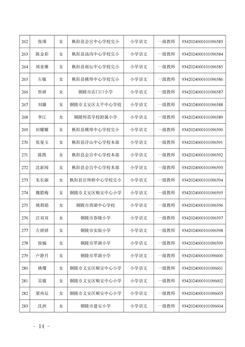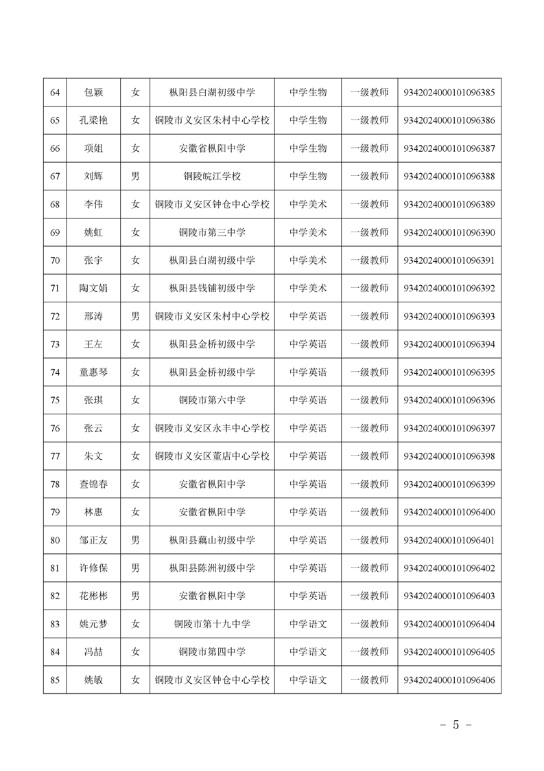 2024年度中小学教师系列中级专业技术资格评审结果-铜官区人民政府