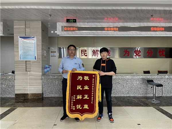 2023年4月18日,铜官区人社局劳动保障监察大队收到劳动者送来的一面写着“敬业正直,为民解忧”的锦旗。