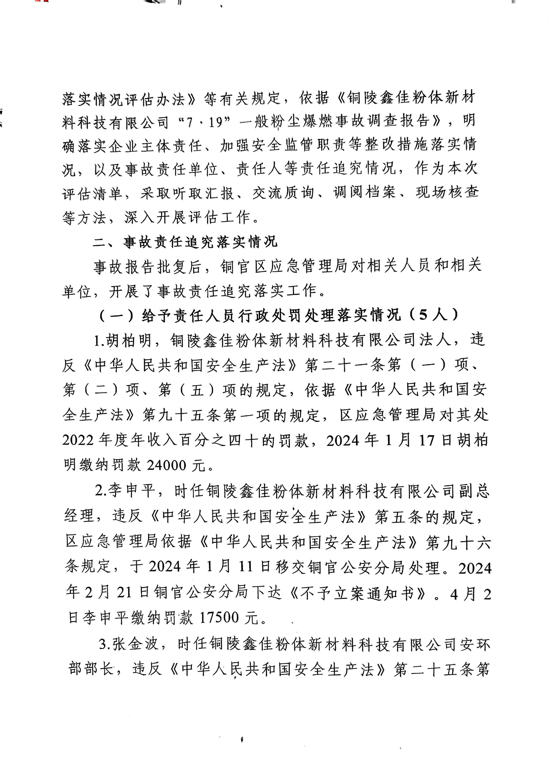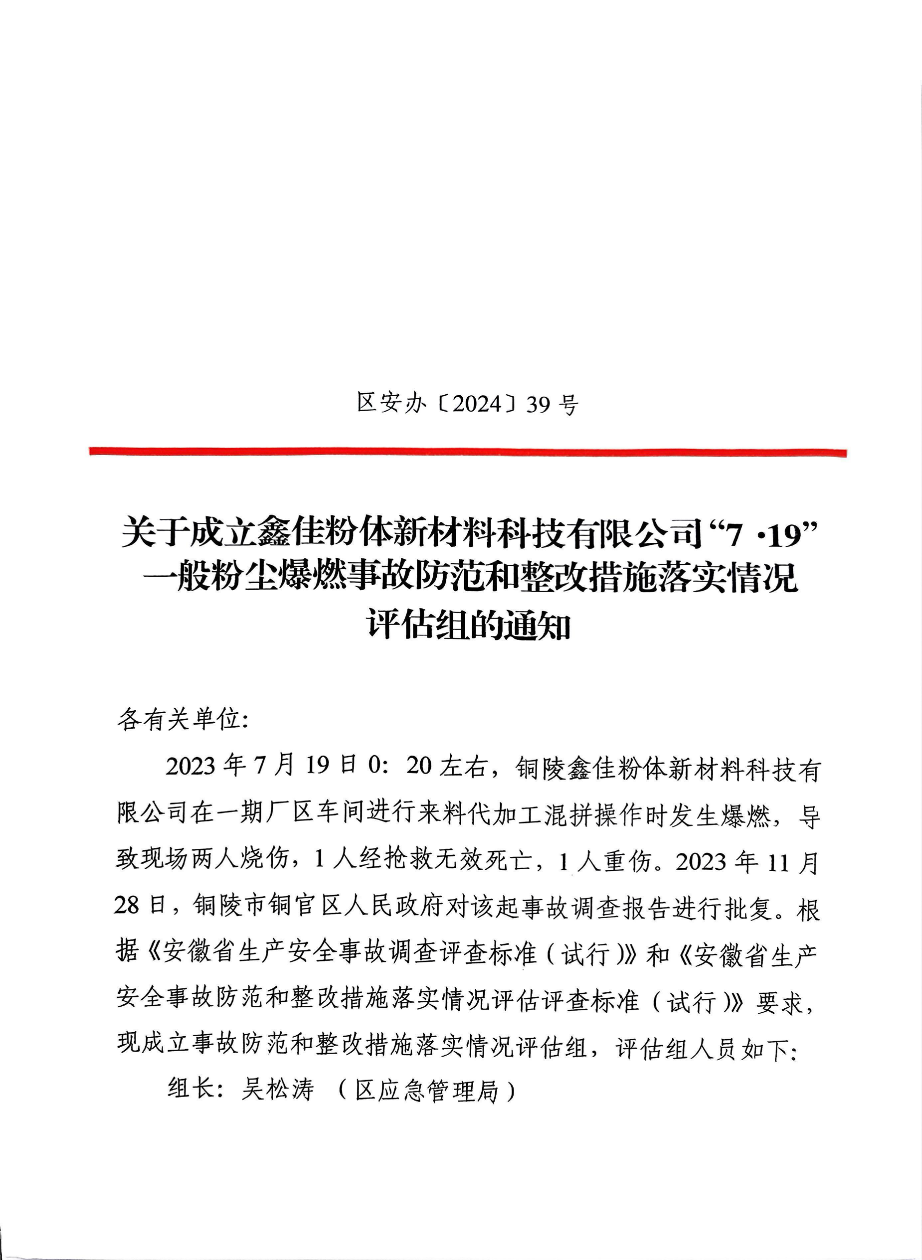 [事故处理防范措施落实情况评估情况]铜陵鑫佳粉体新材料科技有限公司“7·19”一般粉尘爆燃事故防范和整改措施落实情况-铜官区人民政府