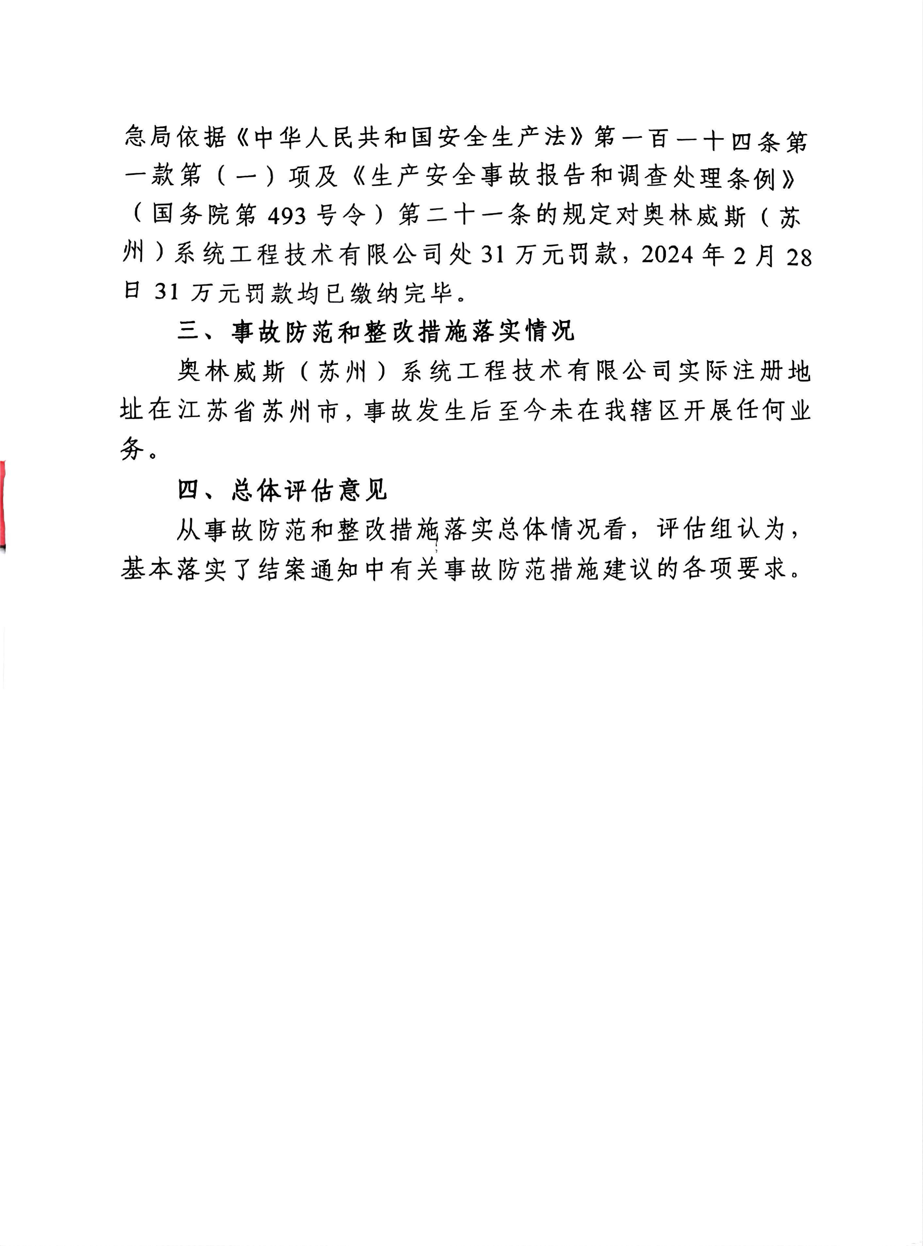 [事故处理防范措施落实情况评估情况]铜陵市奥林威斯(苏州)系统工程技术有限公司“9·4”一般触电事故防范和整改措施落实情况