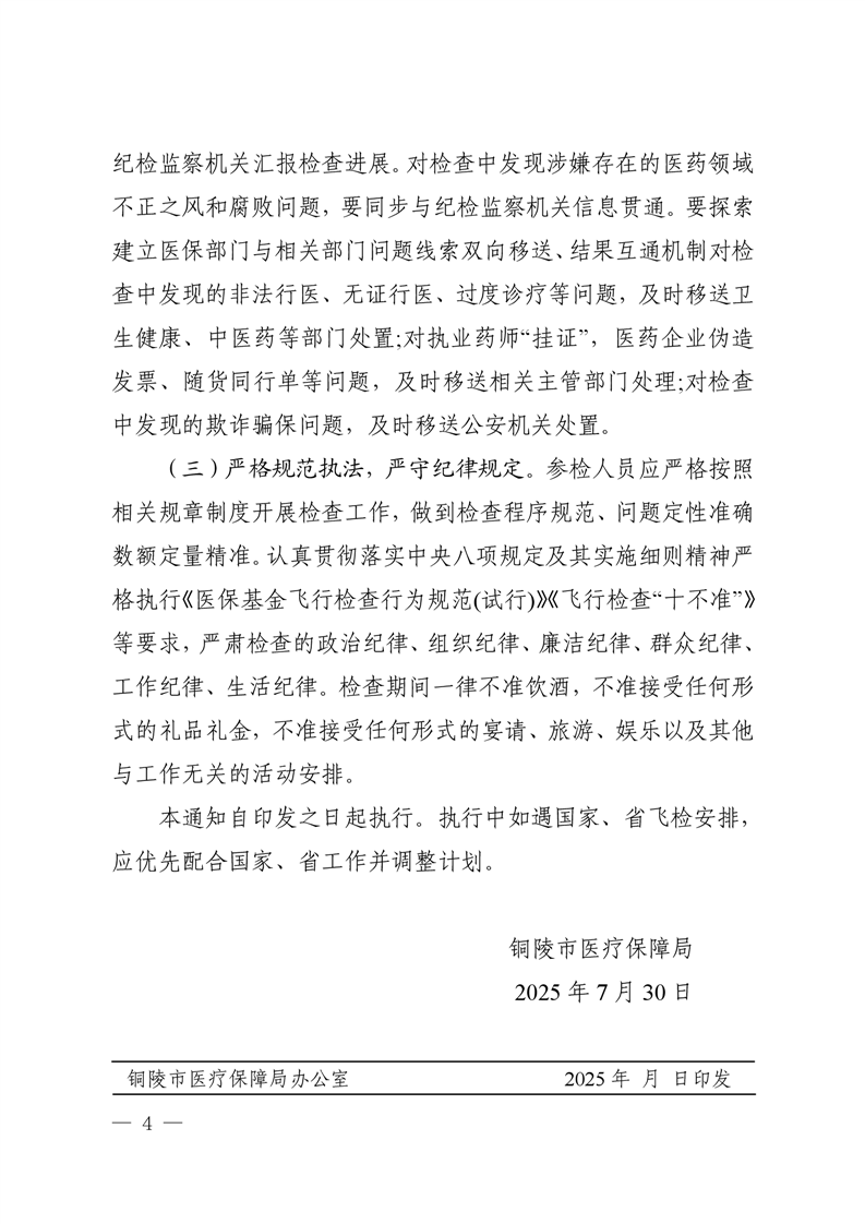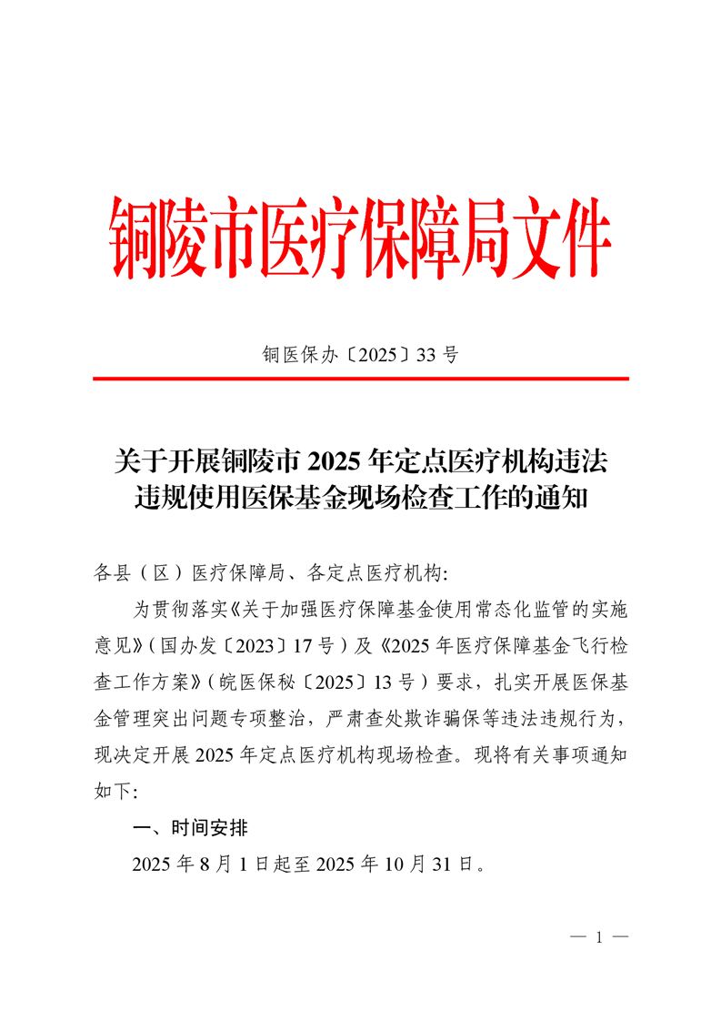 关于开展铜陵市2025年定点医疗机构违法违规使用医保基金现场检查工作的通知-铜官区人民政府