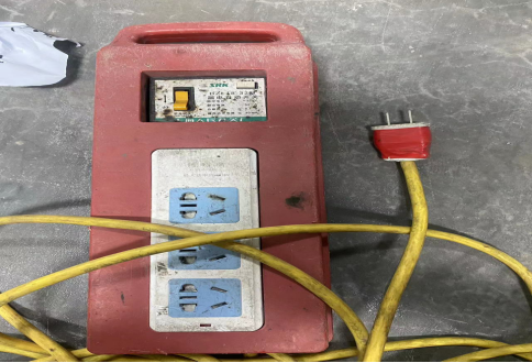 (3)额定电流32A、漏电电流30mA的多用插座接线板A(经现场测试,漏电保护不起作用)接入到图二的五孔插座上,如图三: