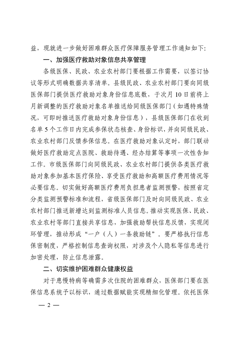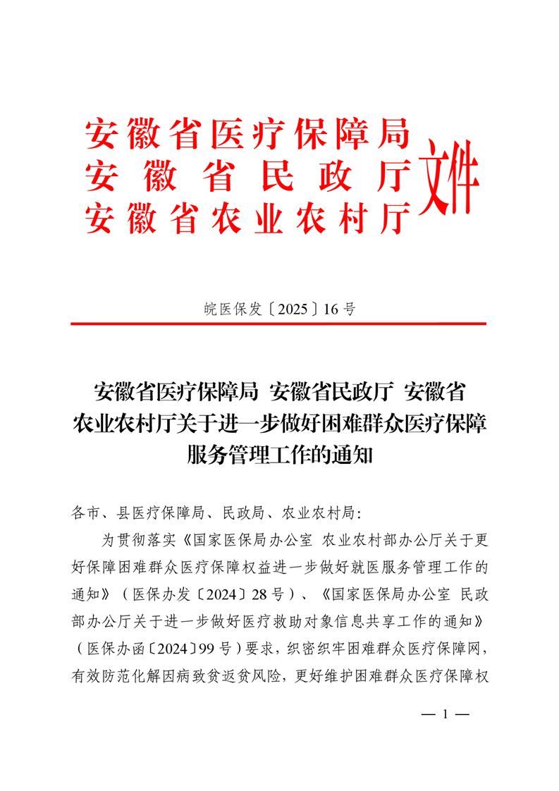 安徽省医疗保障局、安徽省民政厅、安徽省农业农村厅关于进一步做好困难群众医疗保障服务管理工作的通知