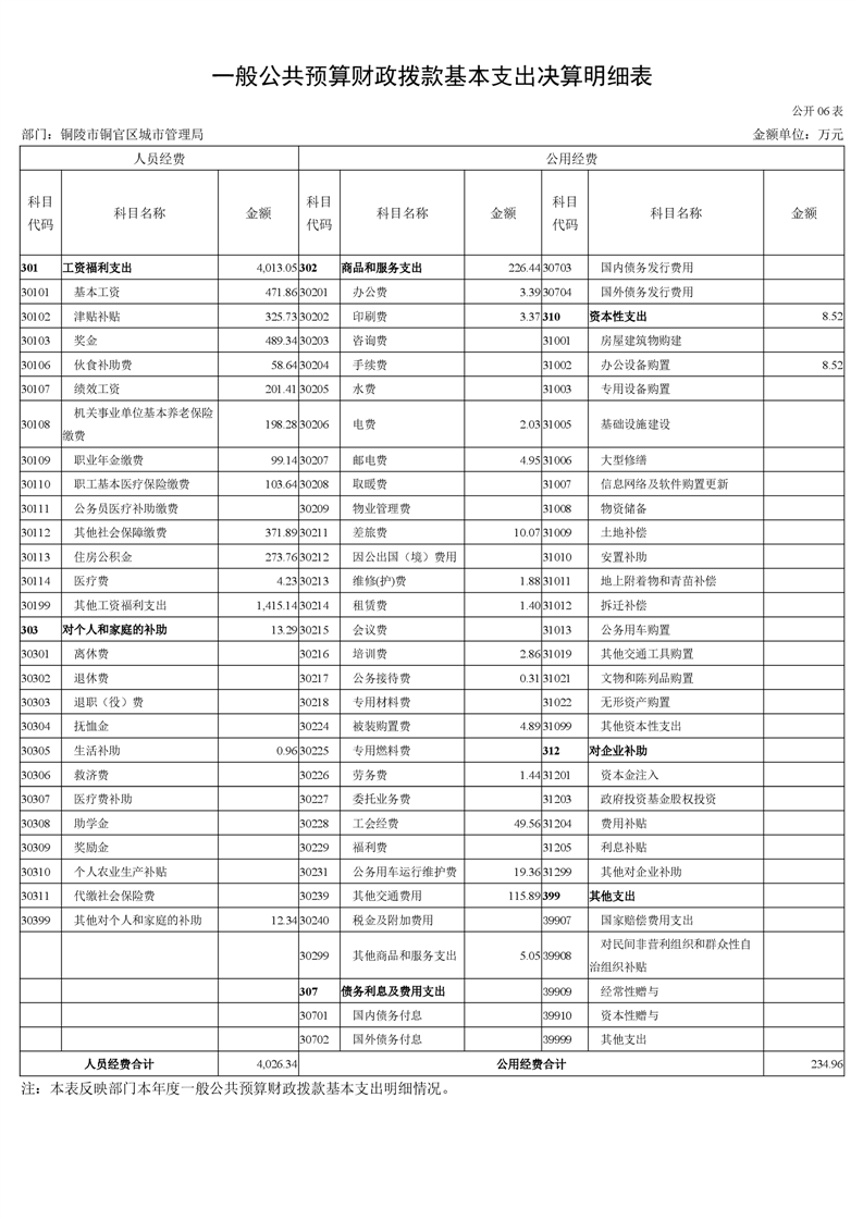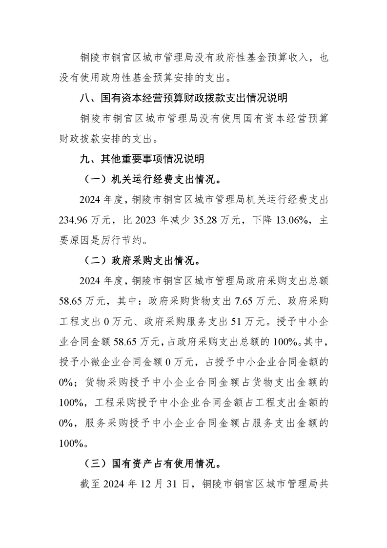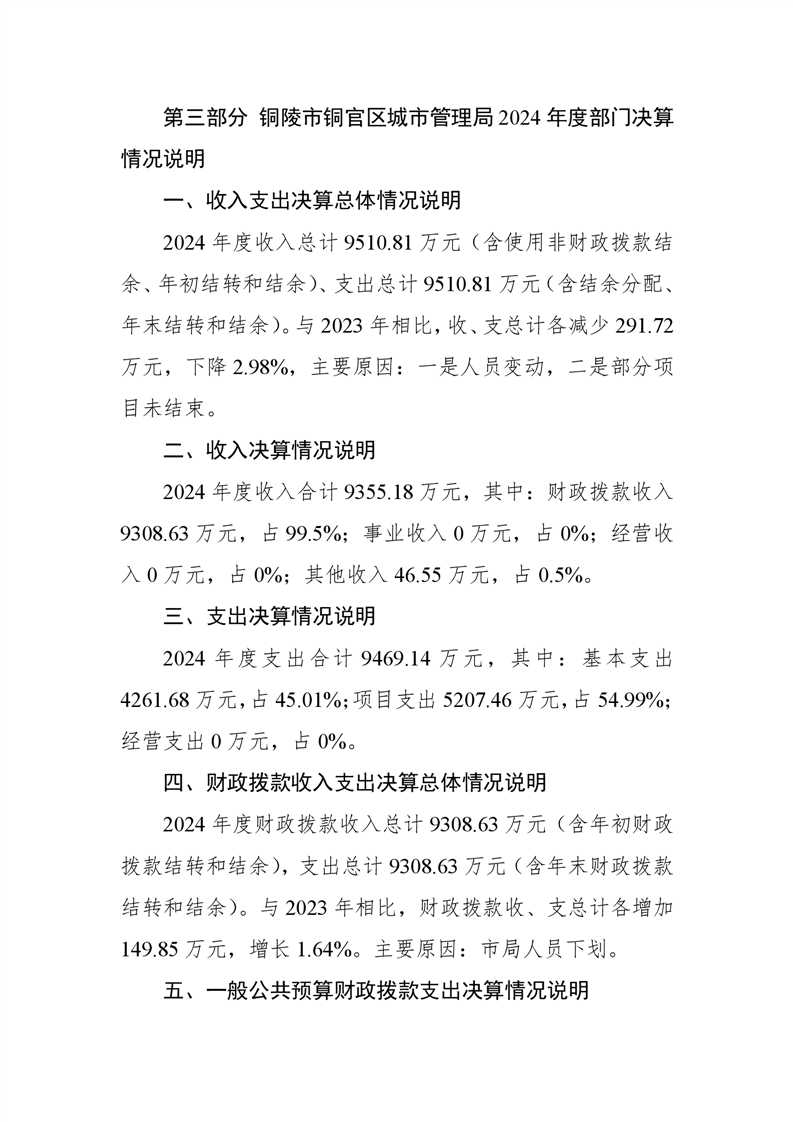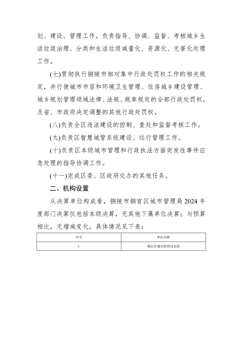 铜陵市铜官区城市管理局2024年度部门决算-铜官区人民政府
