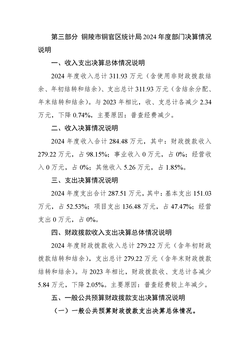 铜陵市铜官区统计局2024年度决算信息公开-铜官区人民政府