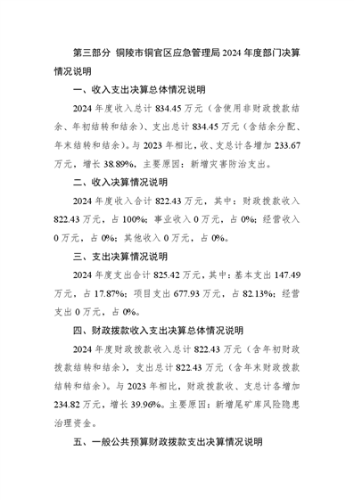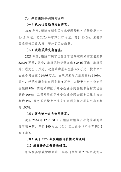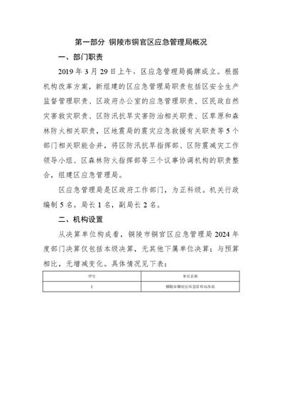 铜陵市铜官区应急管理局2024年部门决算-铜官区人民政府