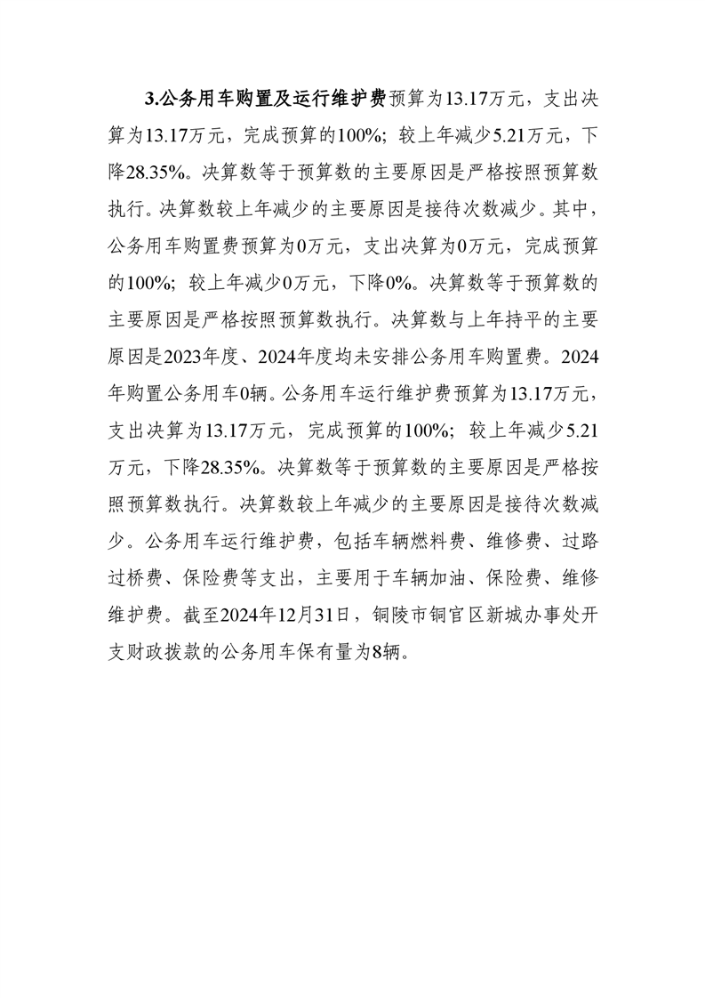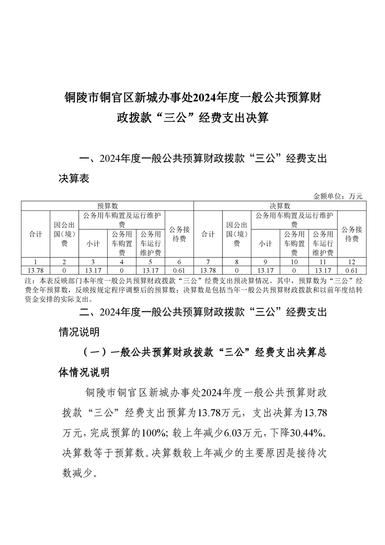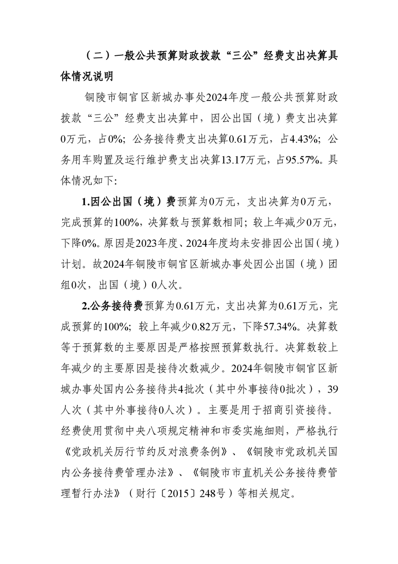 铜陵市铜官区新城办事处2024年三公经费决算-铜官区人民政府