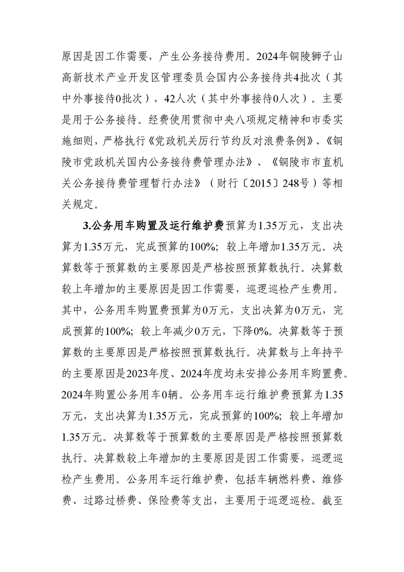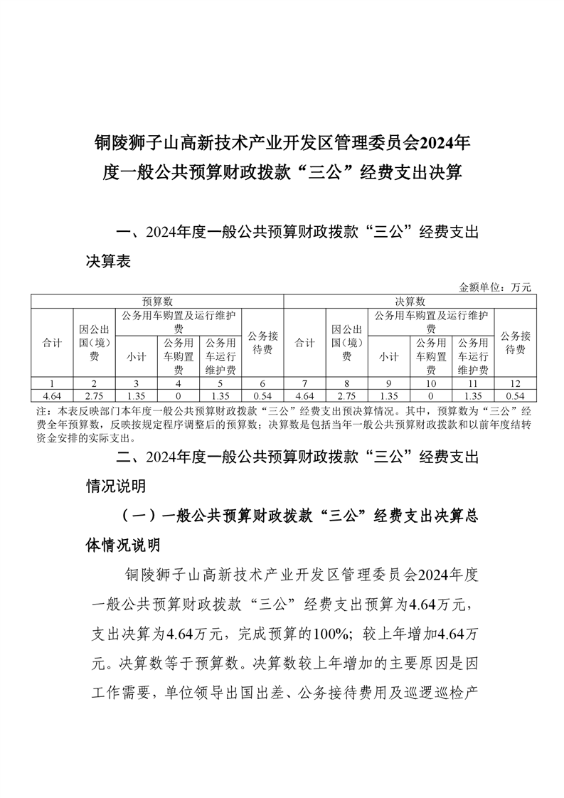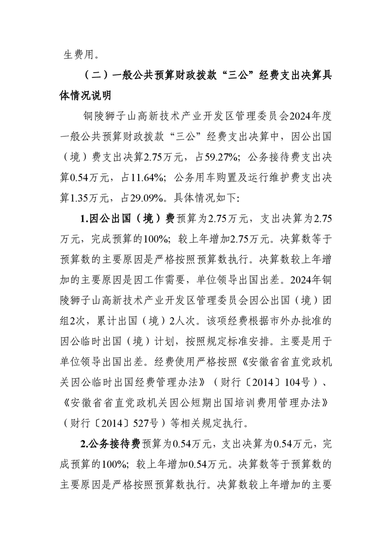 铜陵狮子山高新技术产业开发区管理委员会2024年度一般公共预算财政拨款“三公”经费支出决算-铜官区人民政府