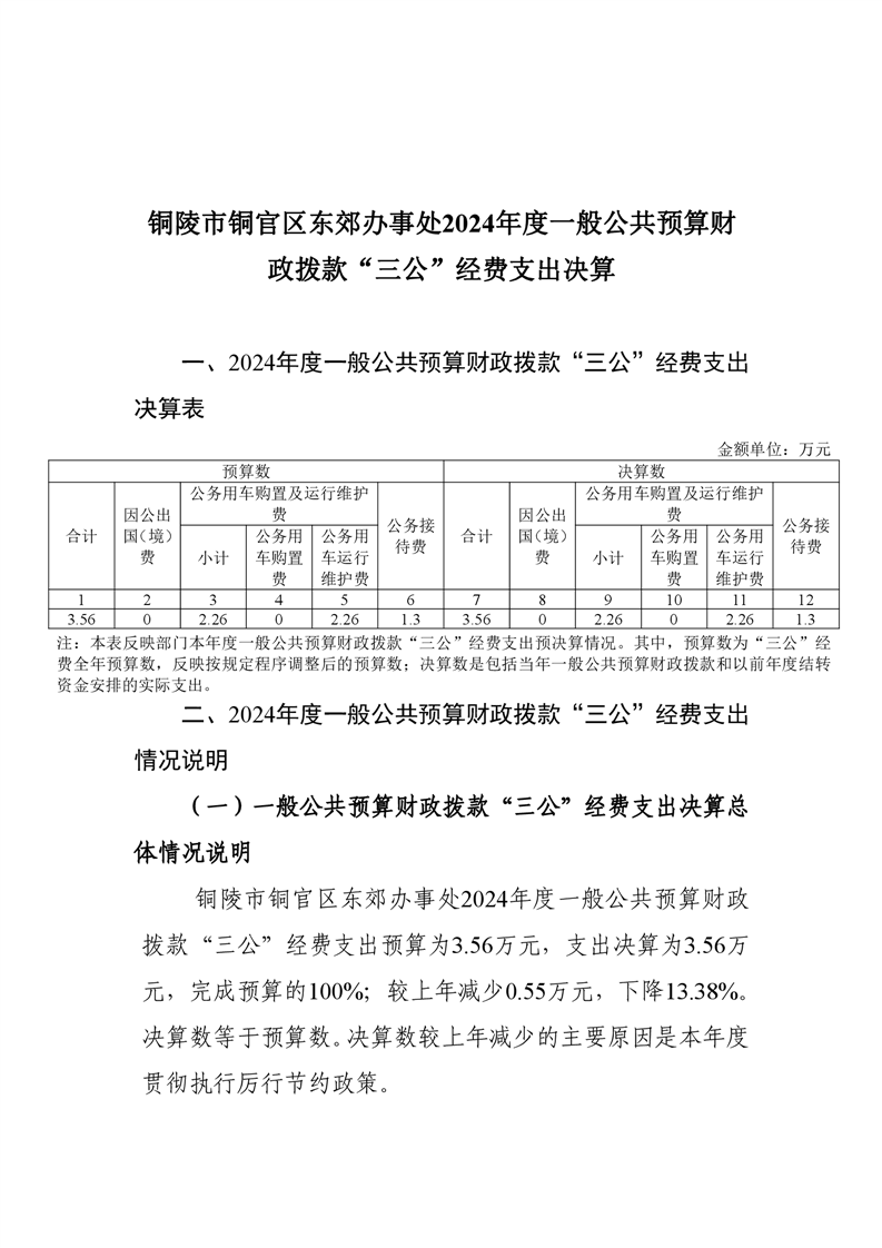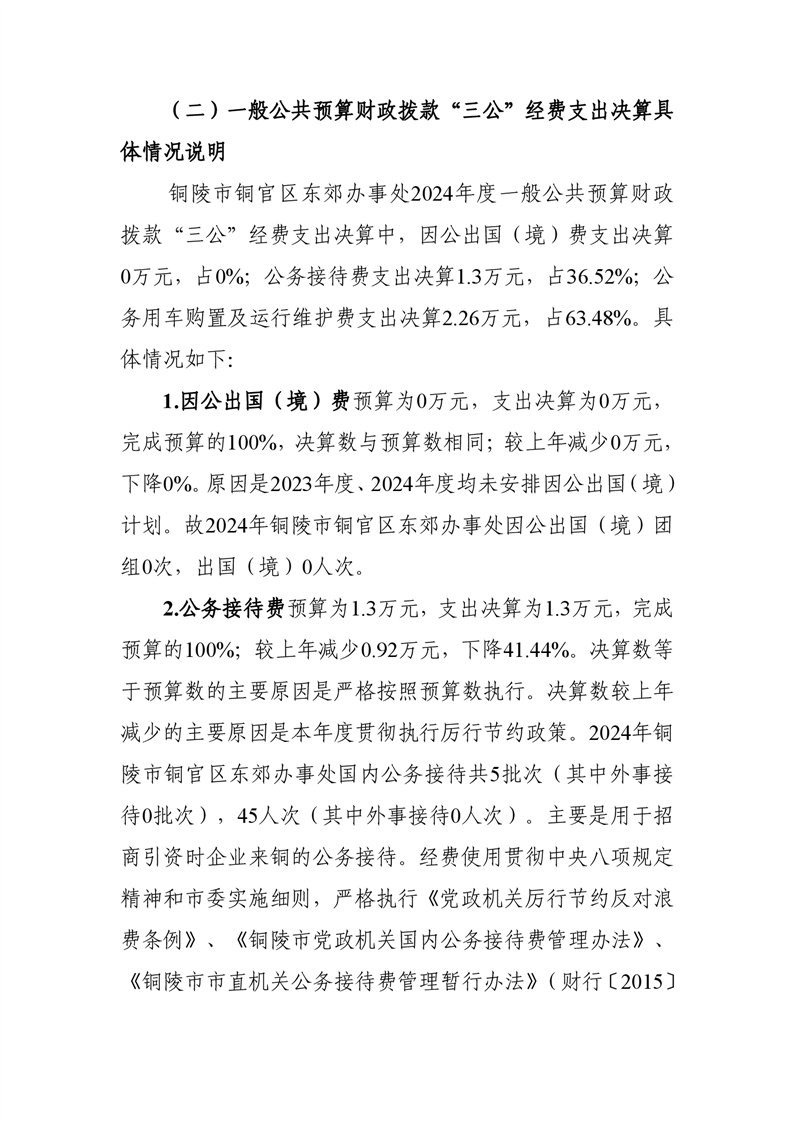 铜陵市铜官区东郊办事处2024年三公经费决算-铜官区人民政府