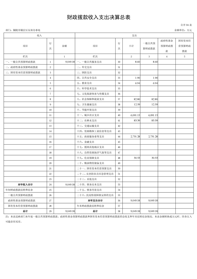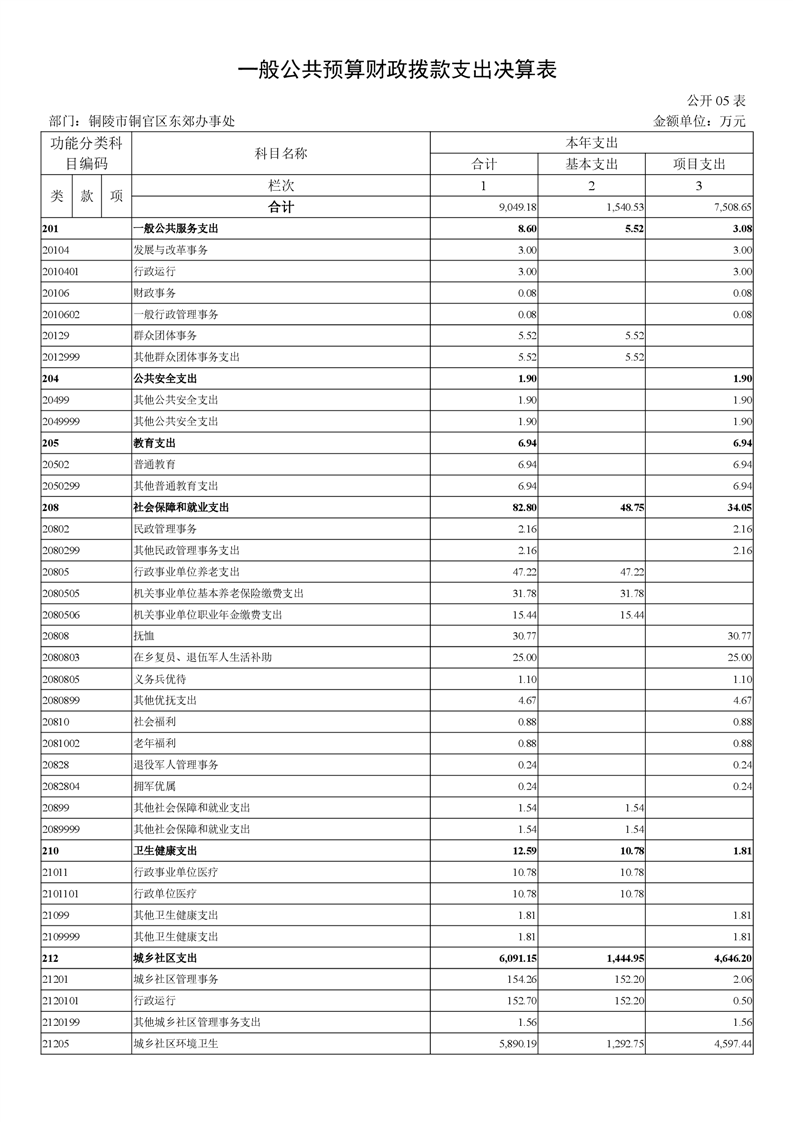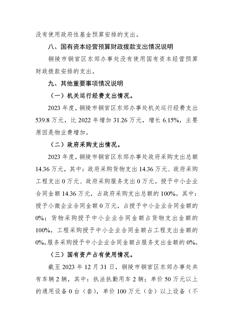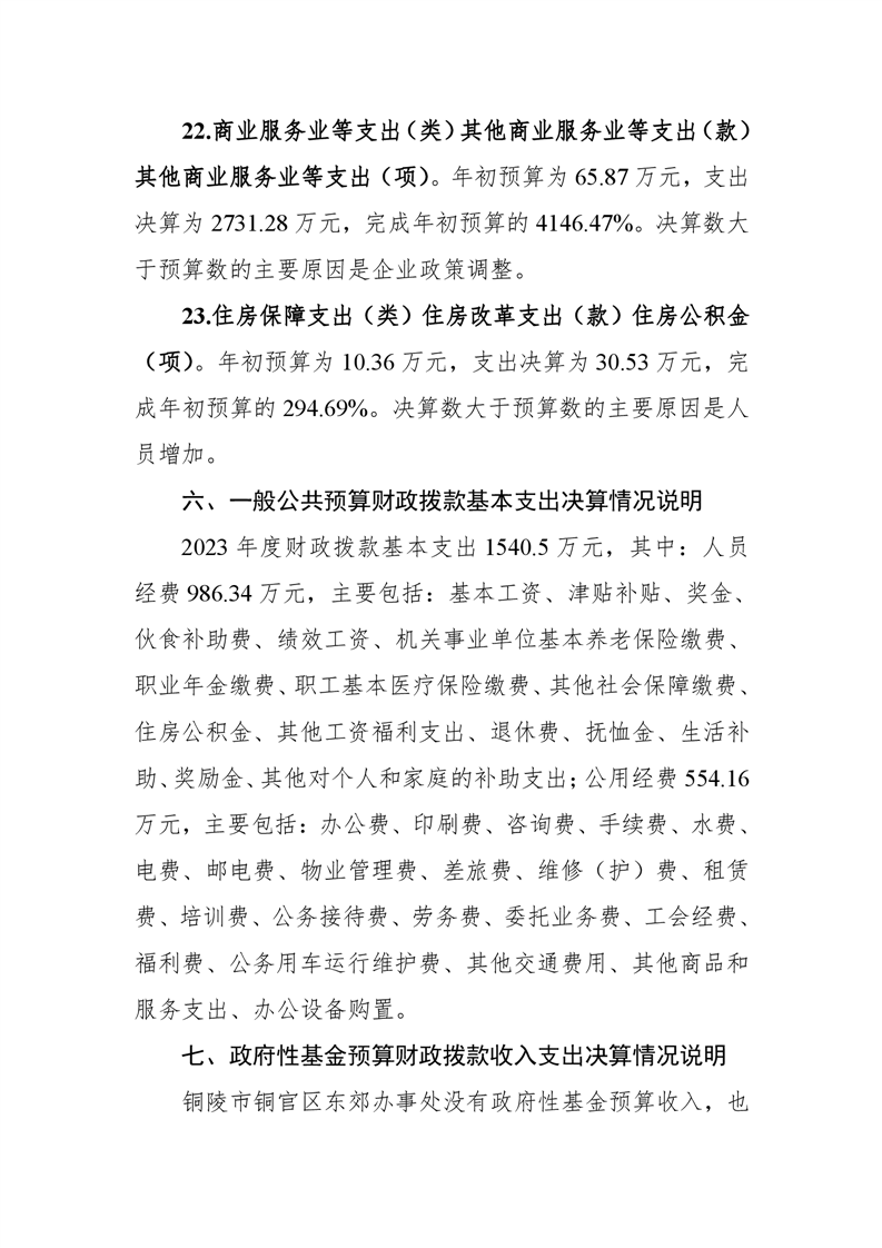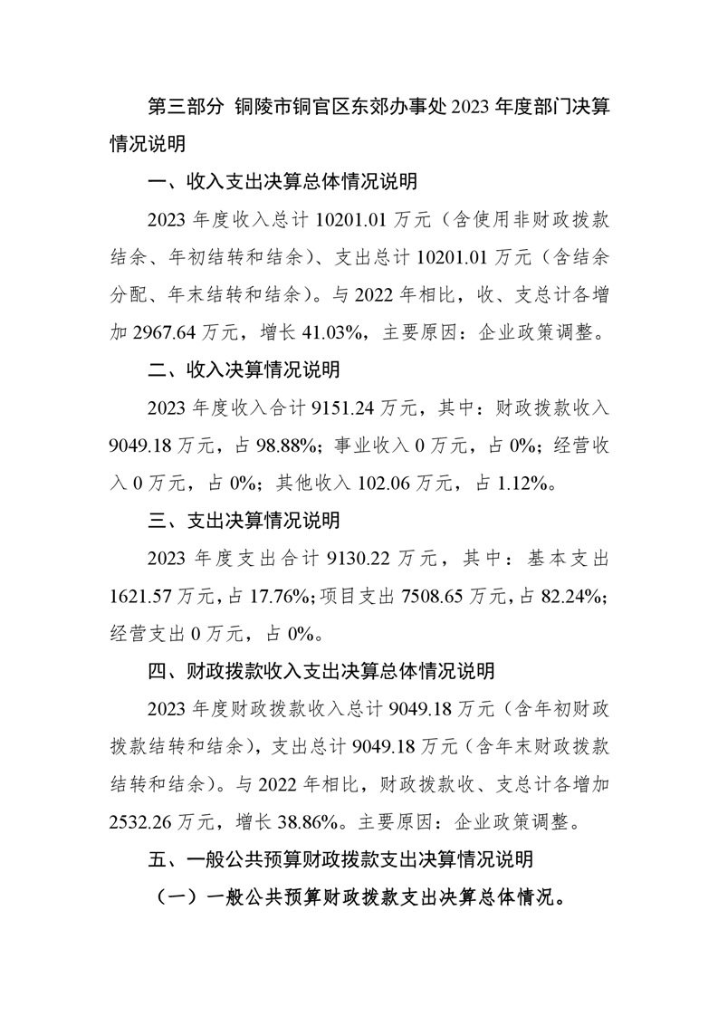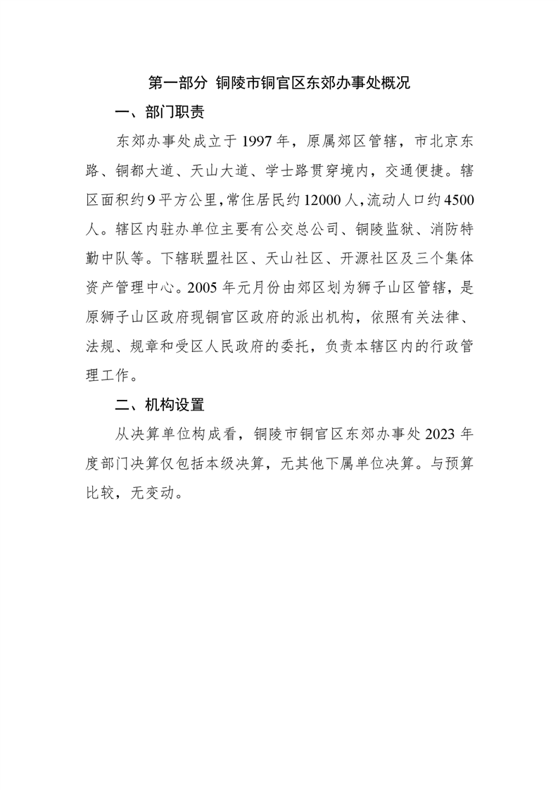 铜官区东郊办事处2023年度部门决算-铜官区人民政府