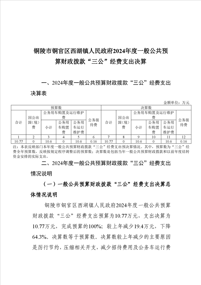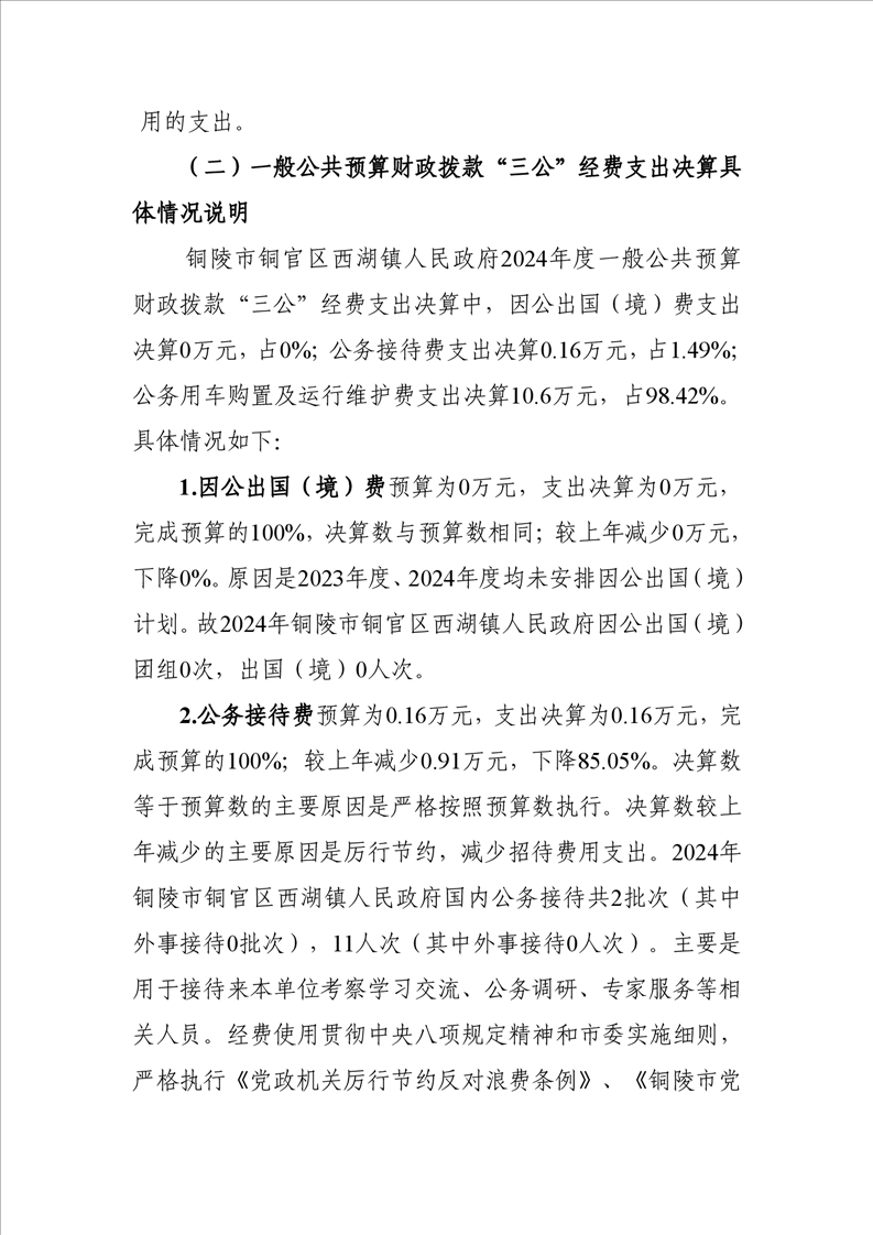 铜官区西湖镇人民政府2024年度一般公共预算财政拨款“三公”经费支出决算-铜官区人民政府