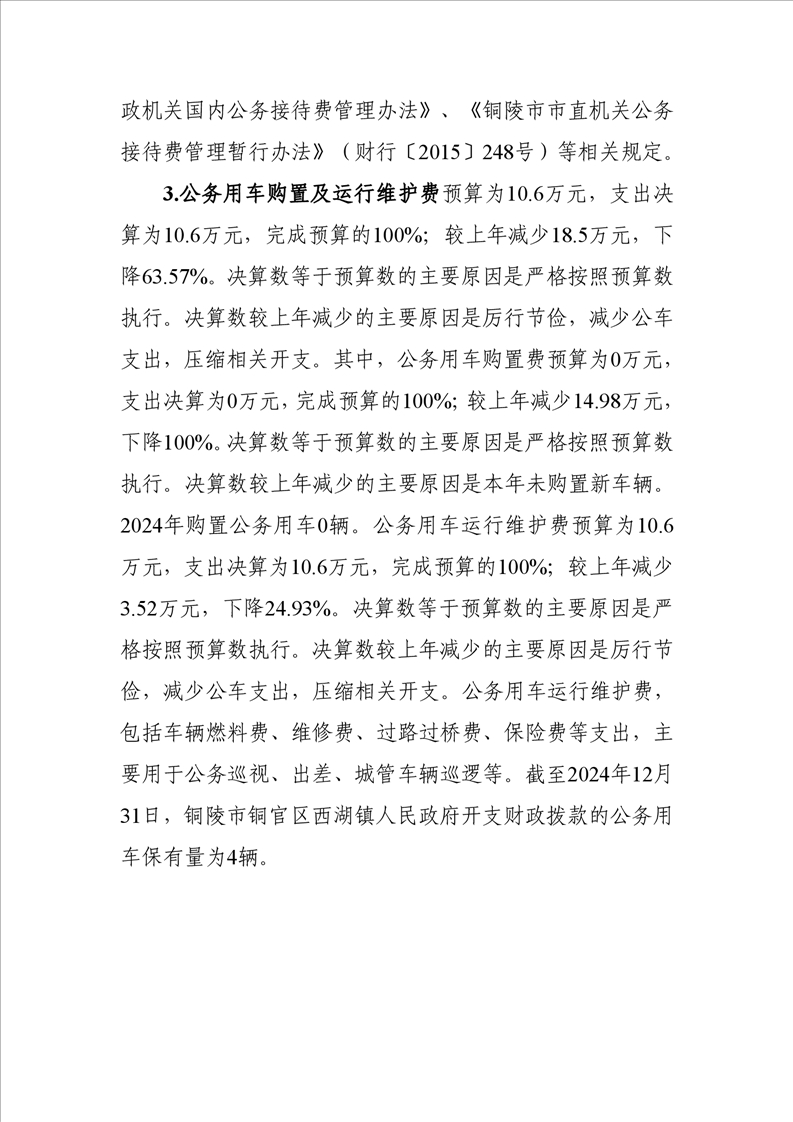 铜官区西湖镇人民政府2024年度一般公共预算财政拨款“三公”经费支出决算