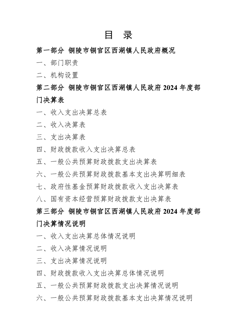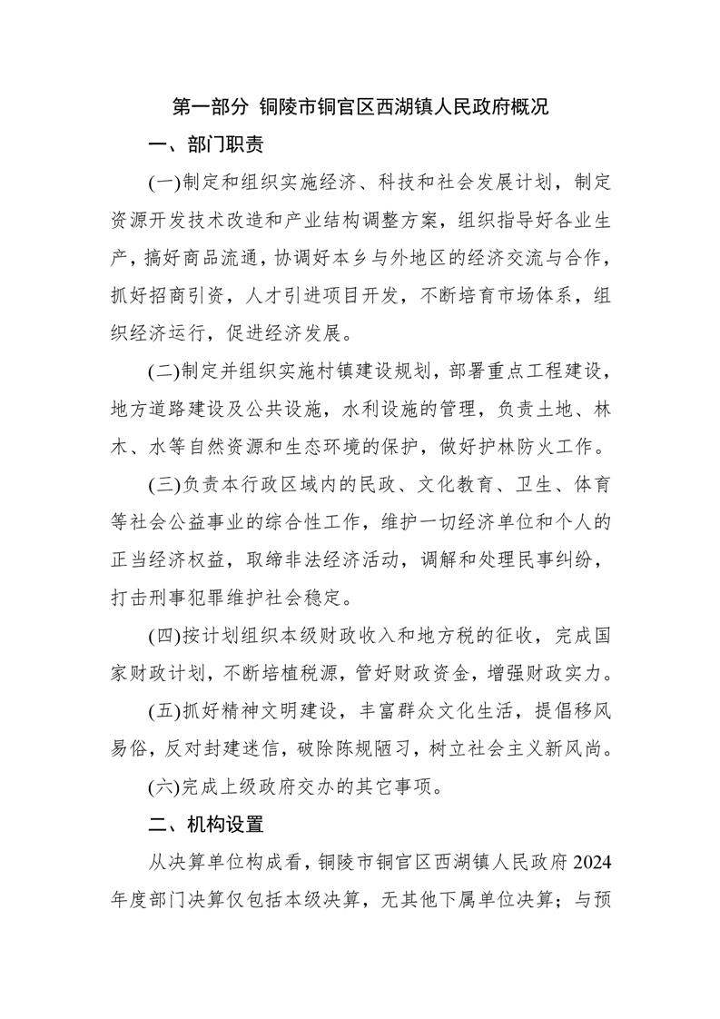 铜陵市铜官区西湖镇人民政府2024年度部门决算