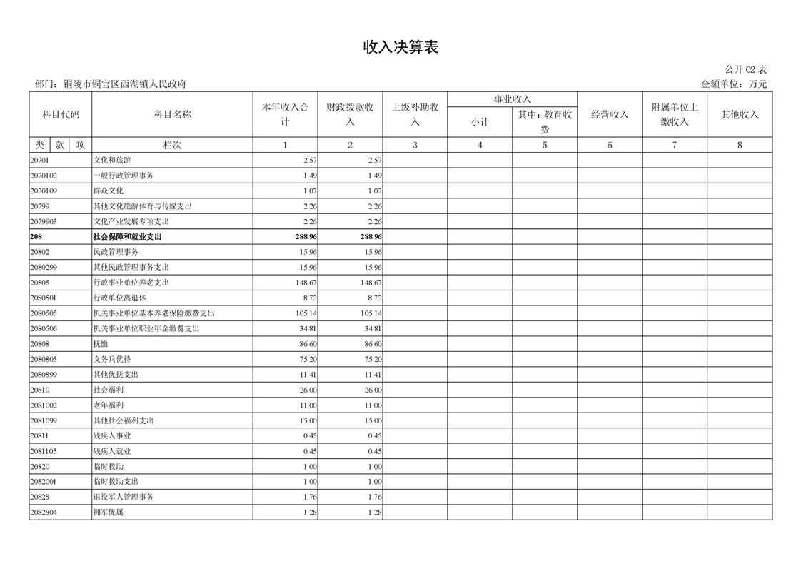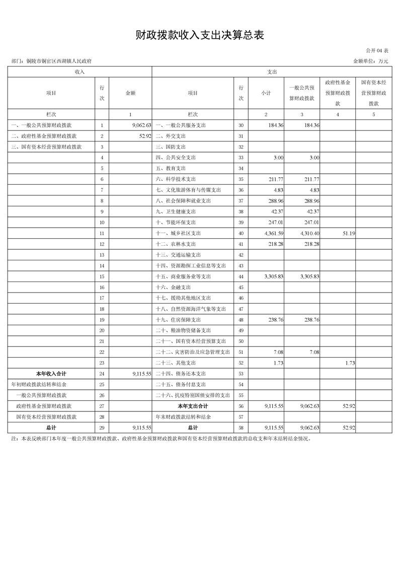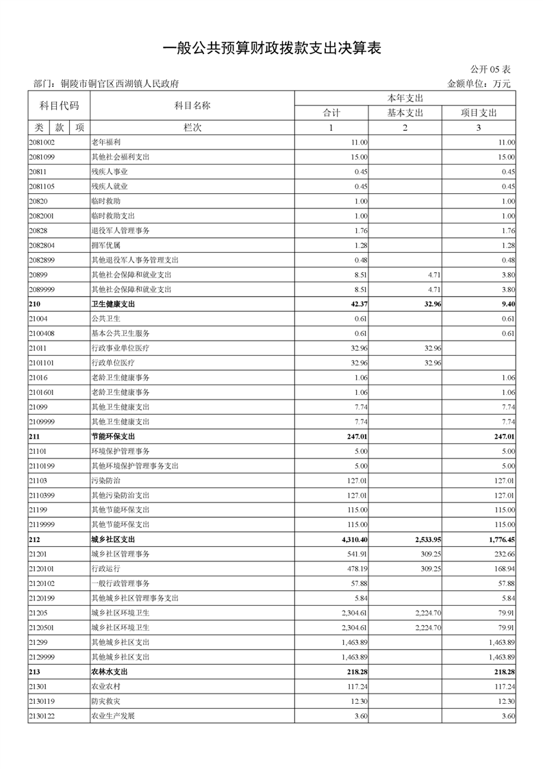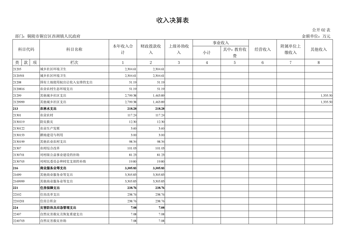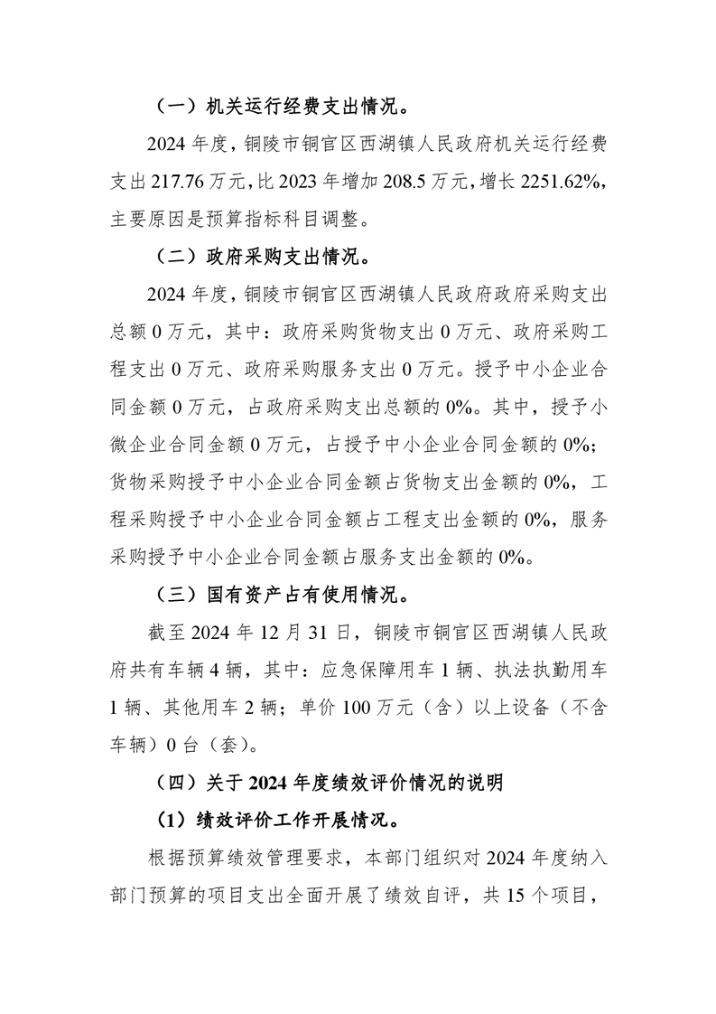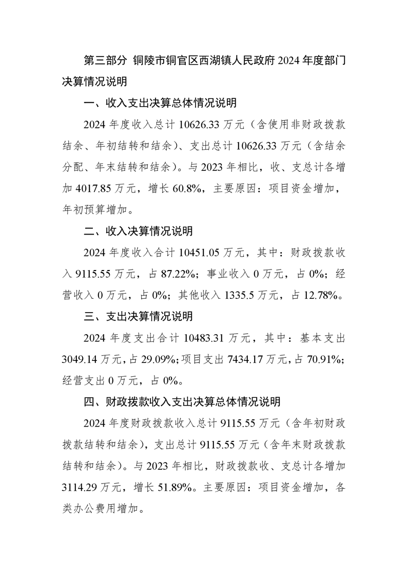 铜陵市铜官区西湖镇人民政府2024年度部门决算-铜官区人民政府