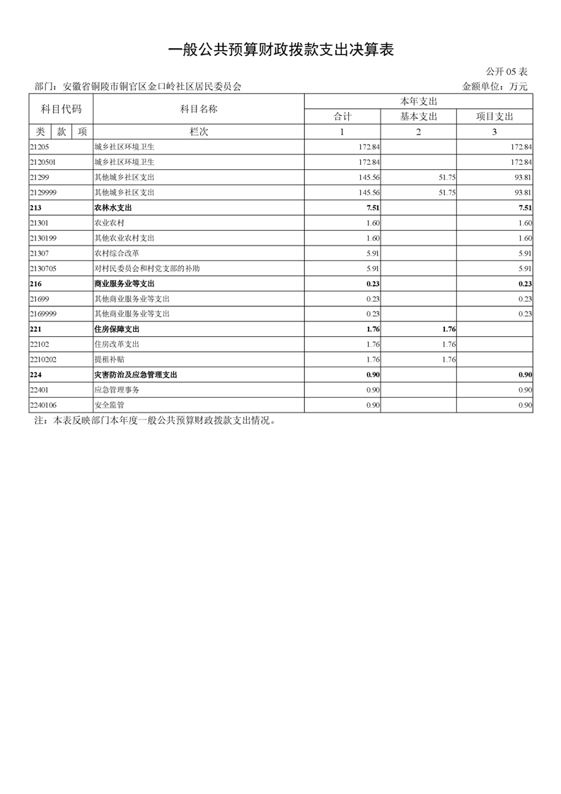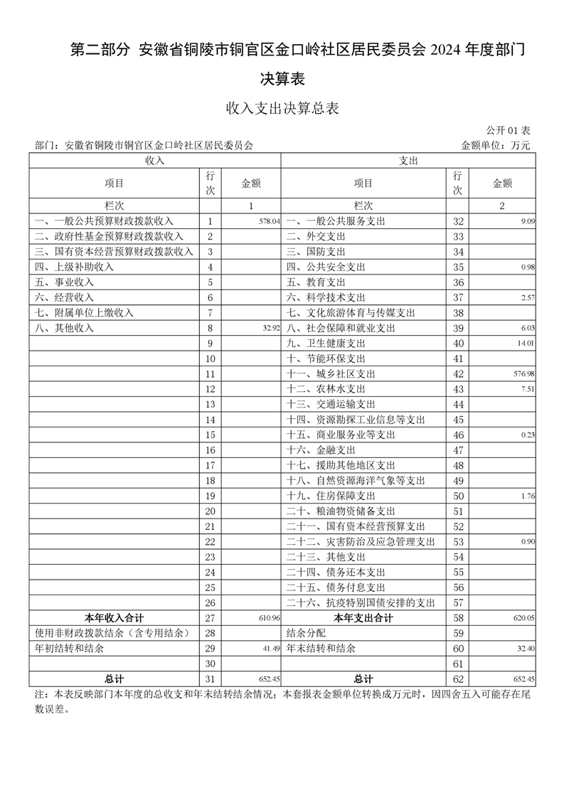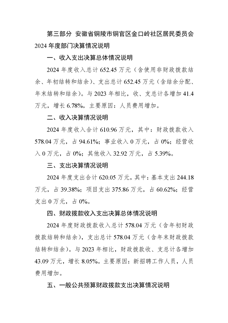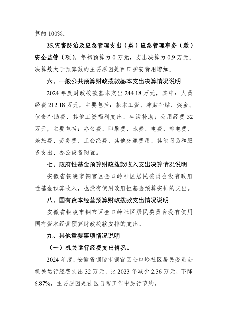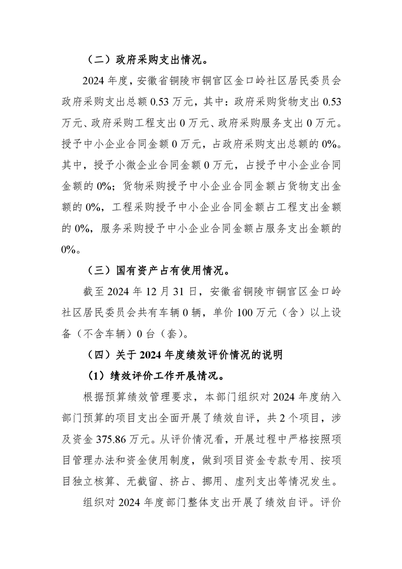 铜官区金口岭社区2024年度部门决算 |