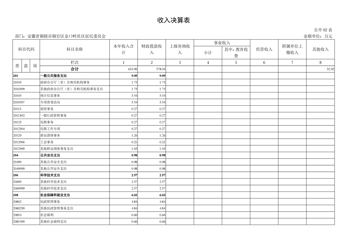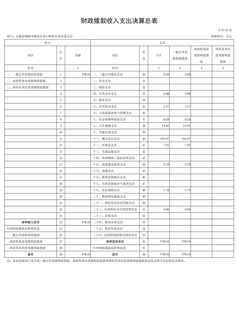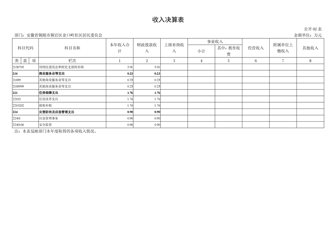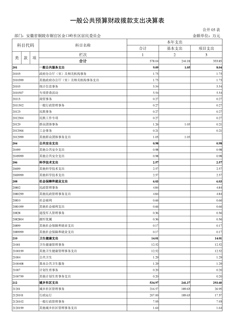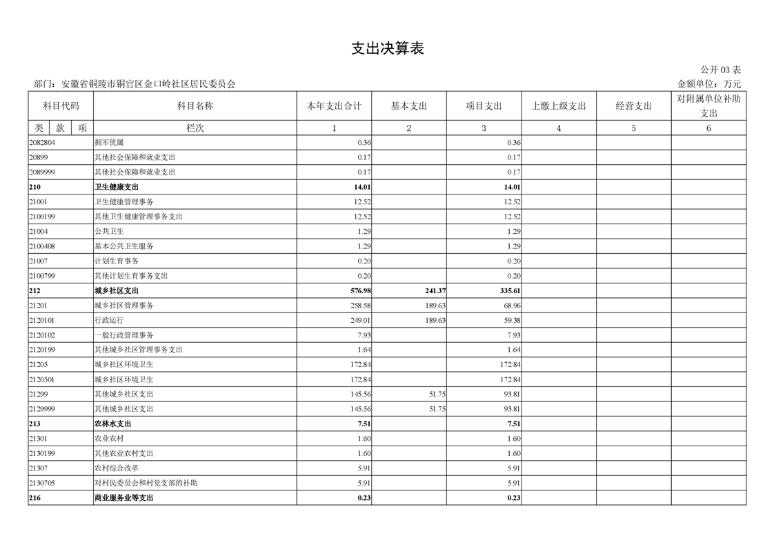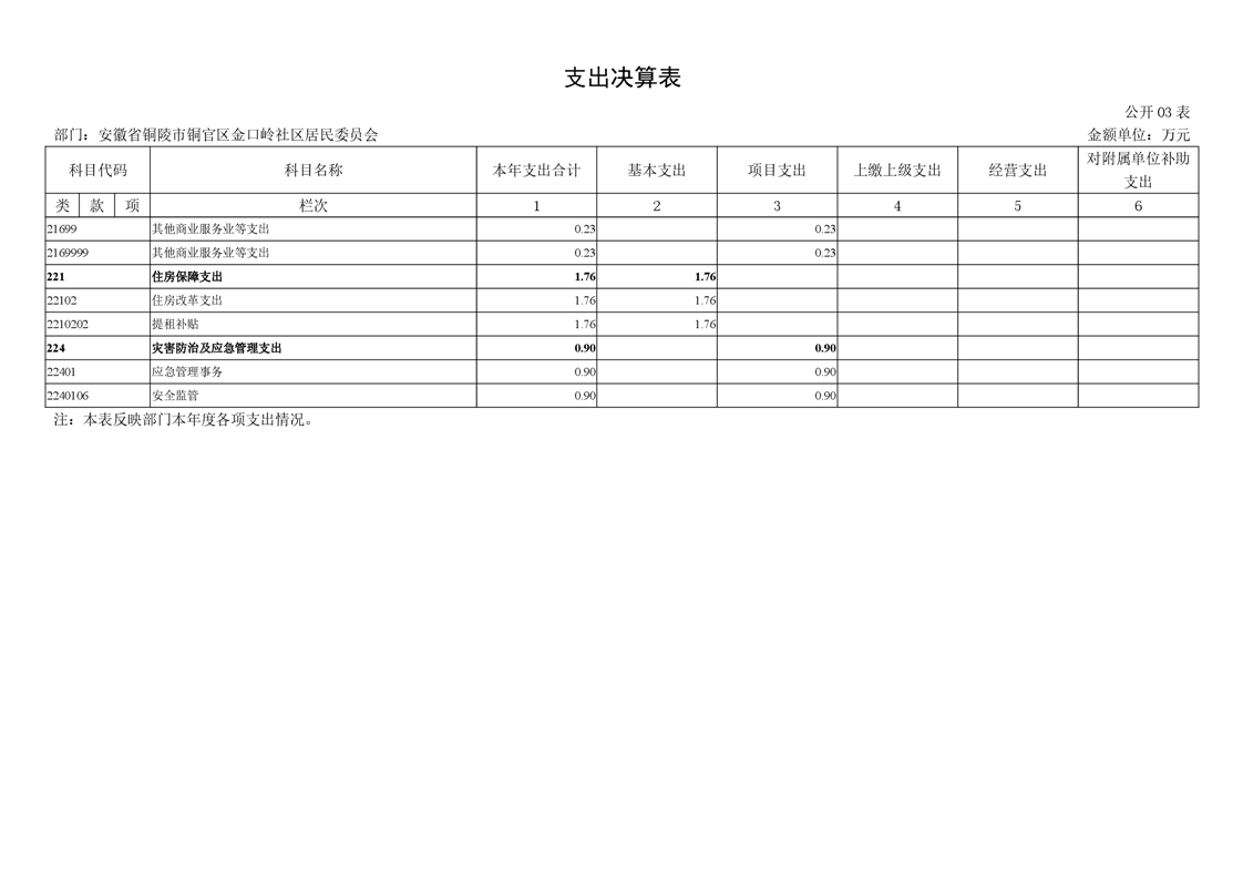 铜官区金口岭社区2024年度部门决算 |