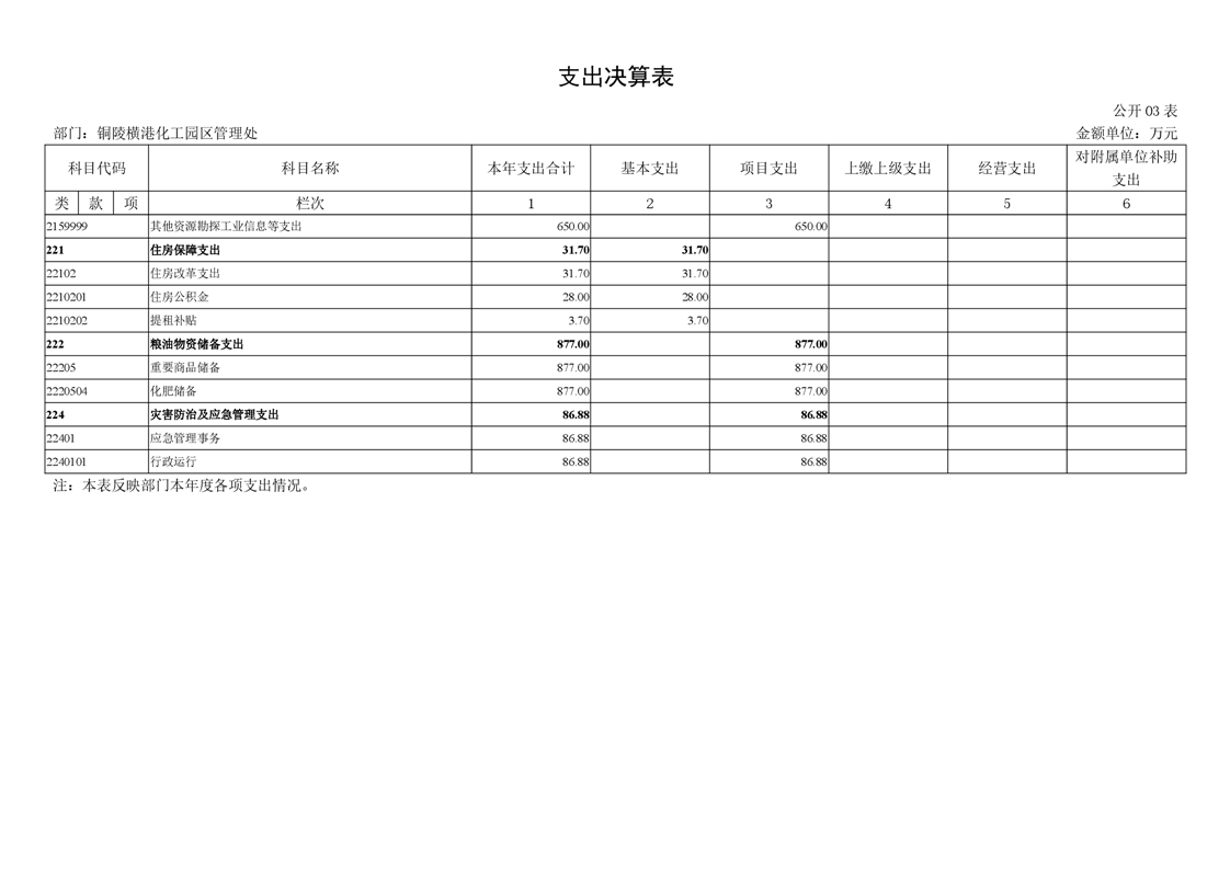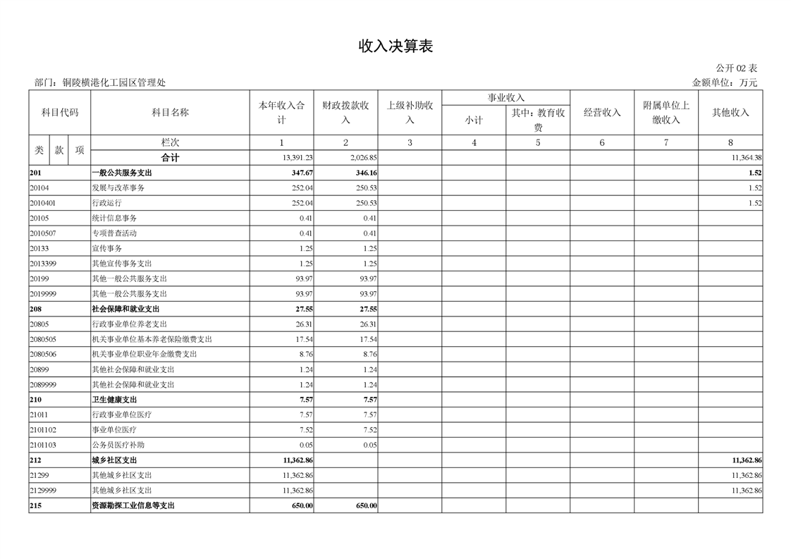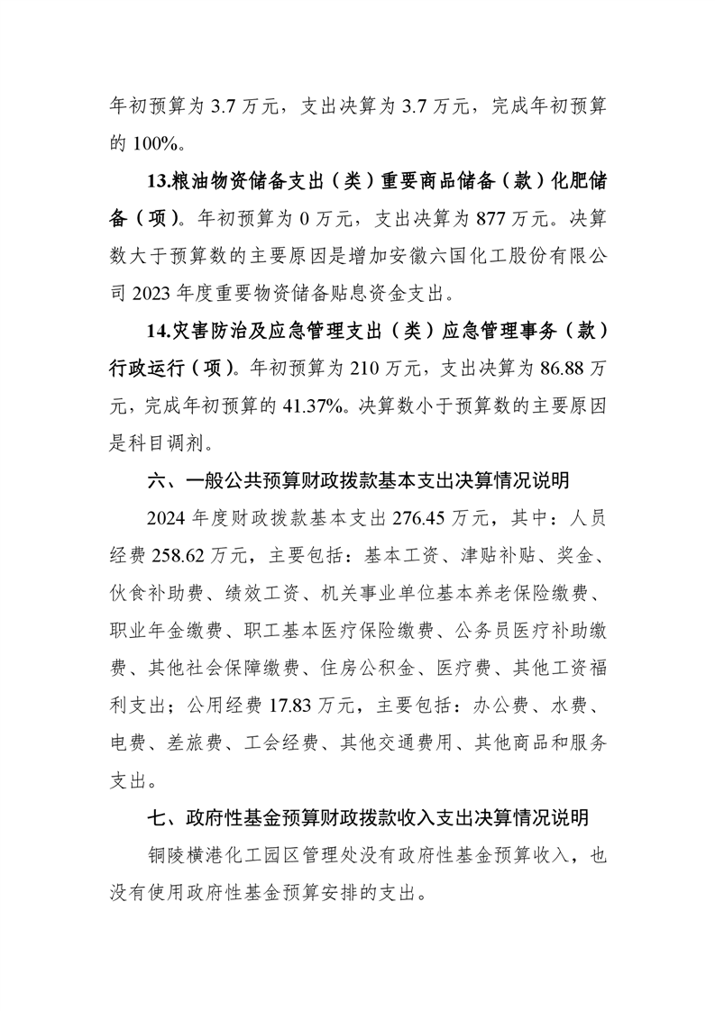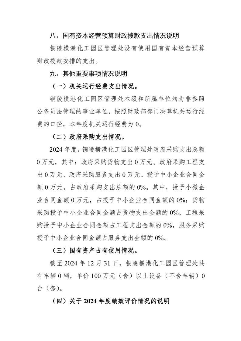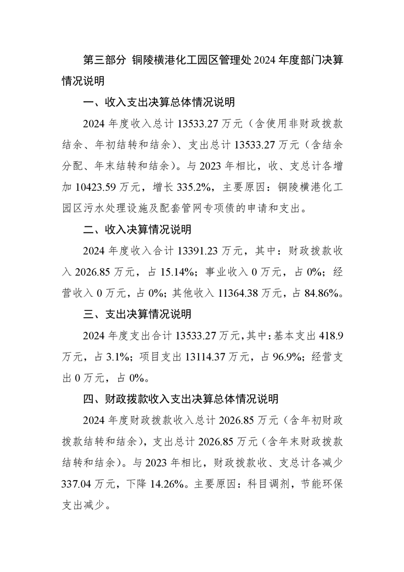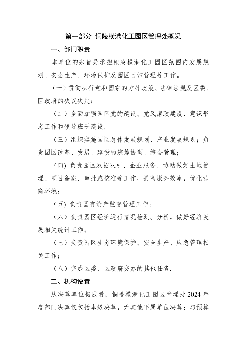 铜陵横港化工园区管理处 2024 年度部门决算-铜官区人民政府