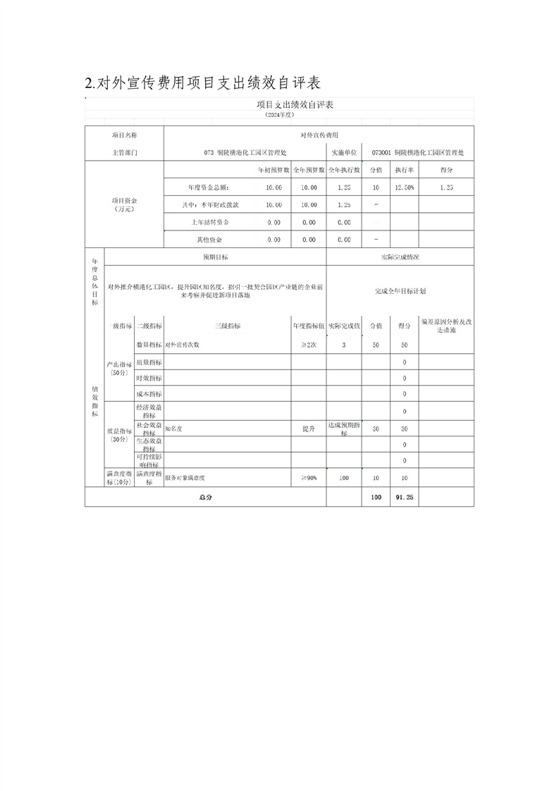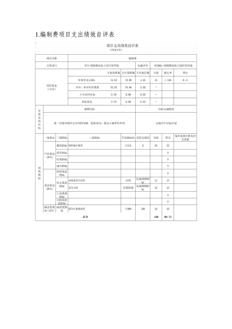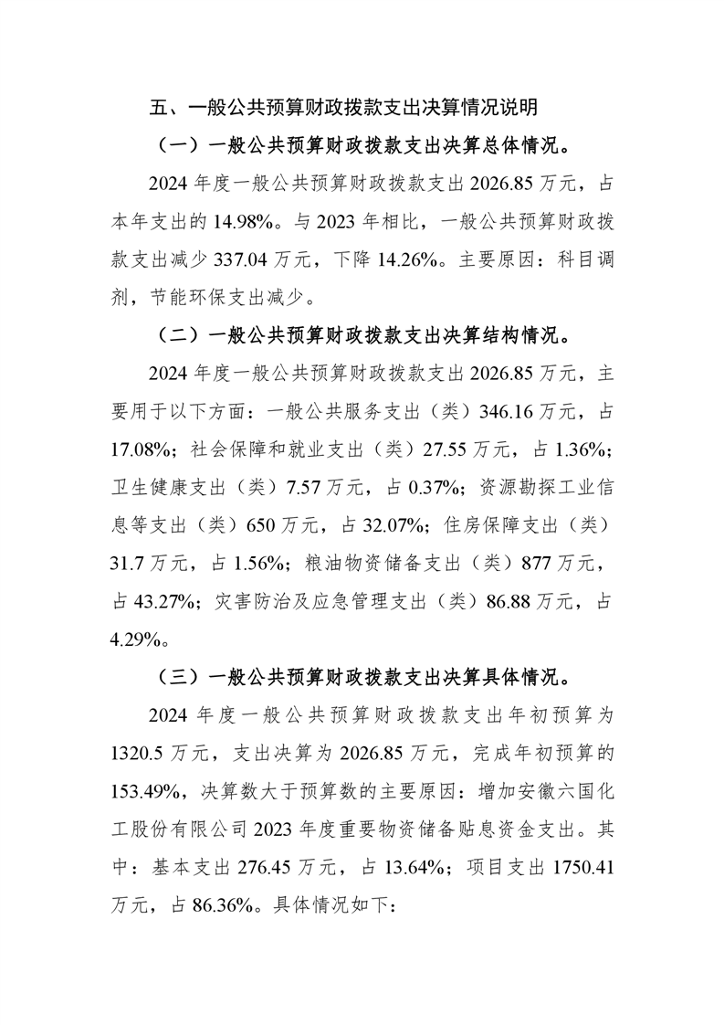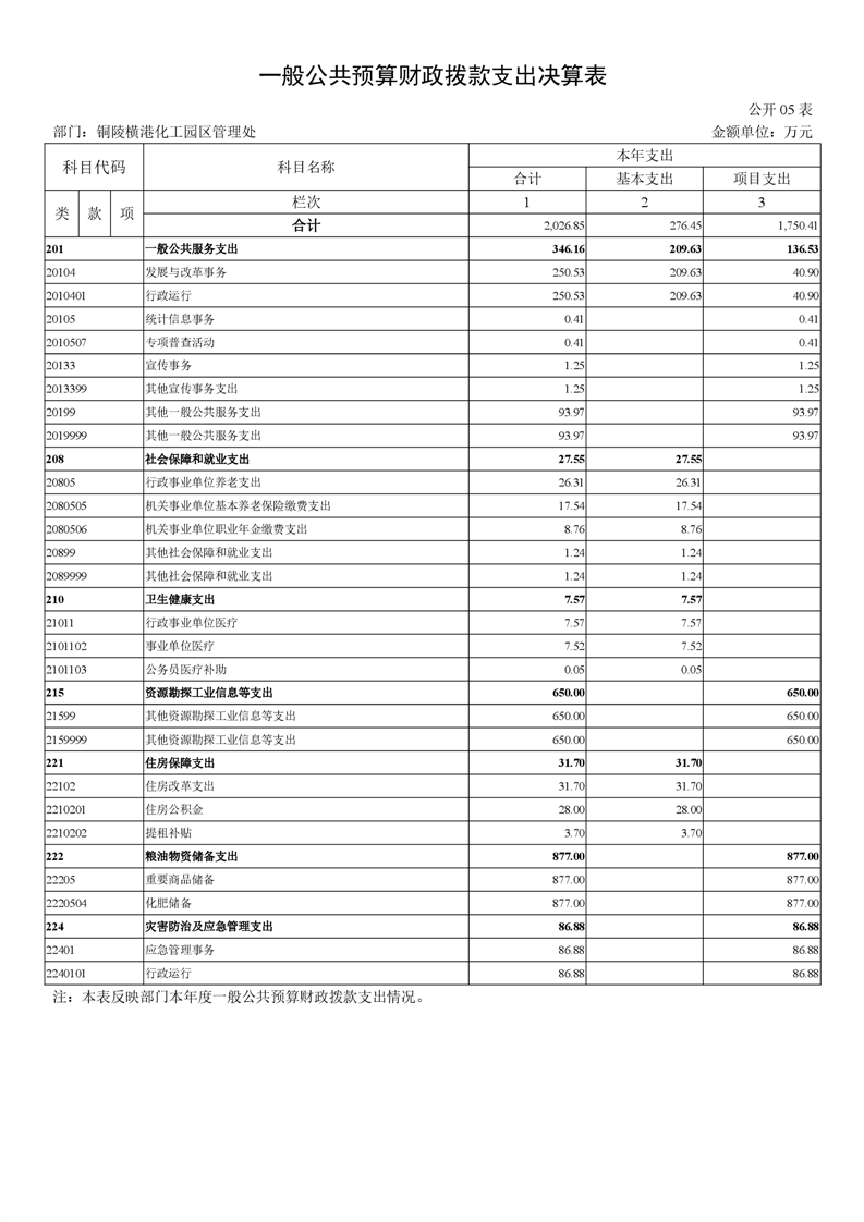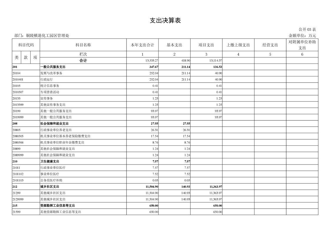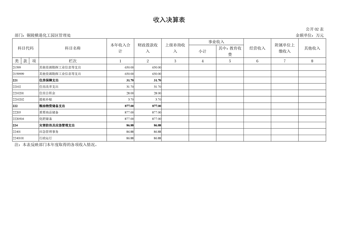 铜陵横港化工园区管理处 2024 年度部门决算-铜官区人民政府