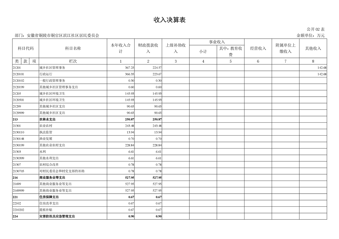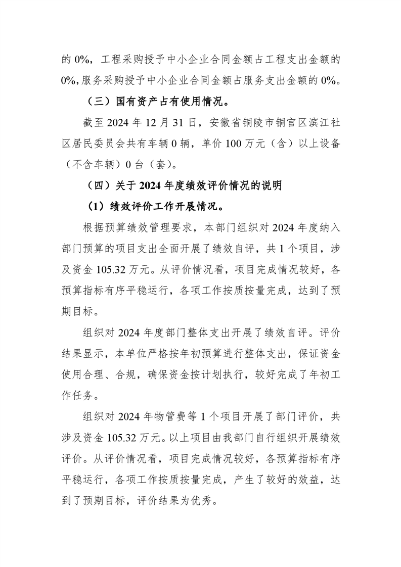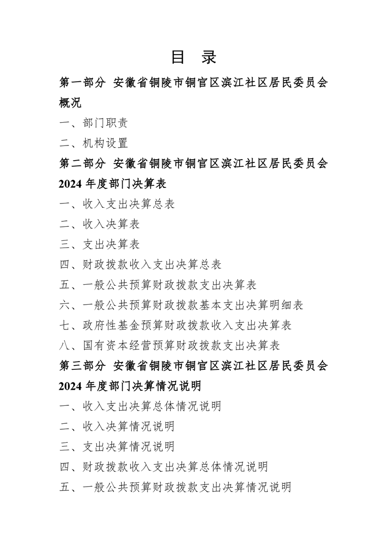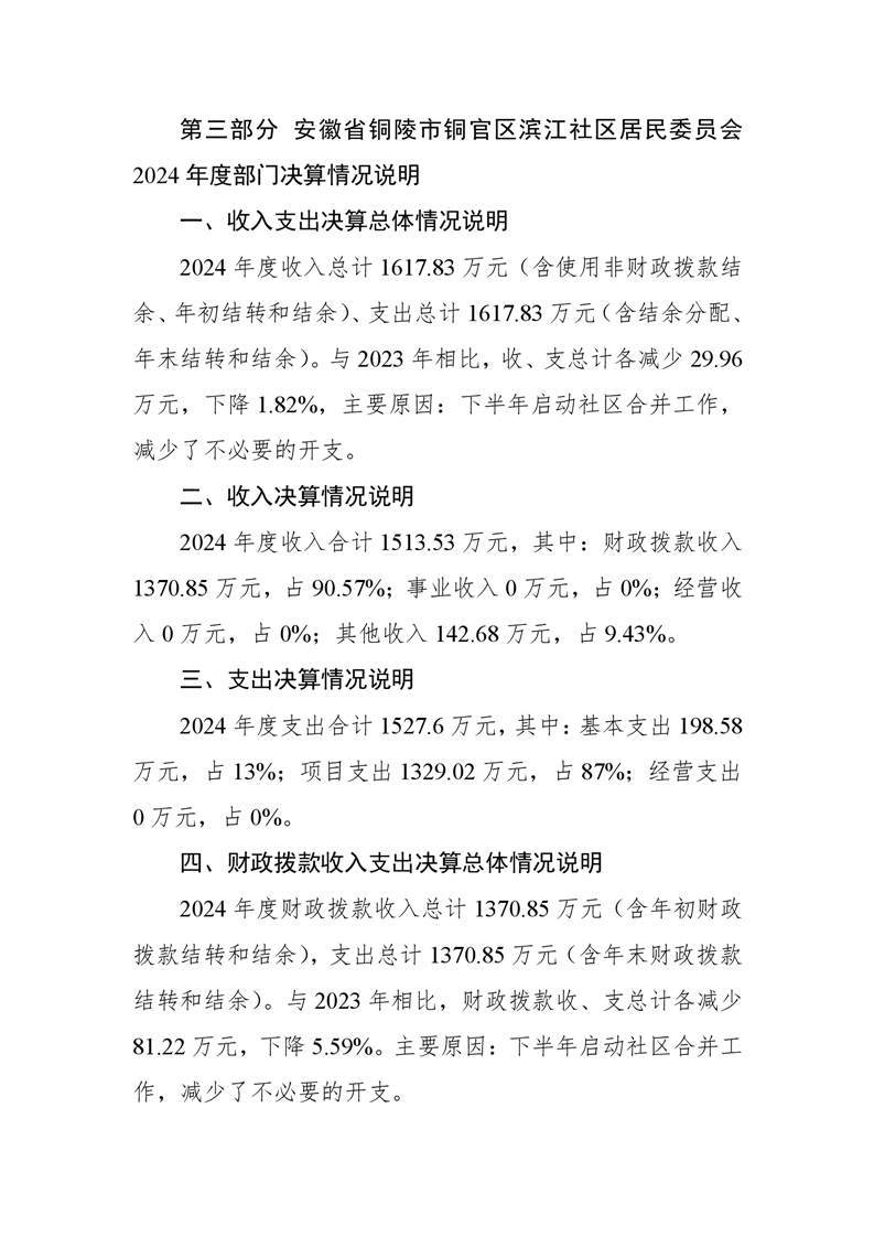 铜陵市铜官区滨江社区居民委员会2024年度部门决算-铜官区人民政府