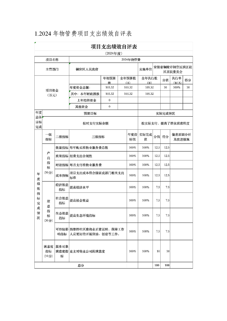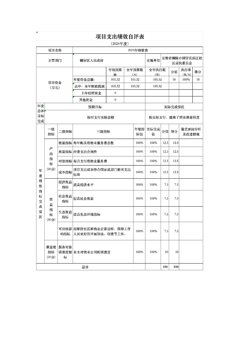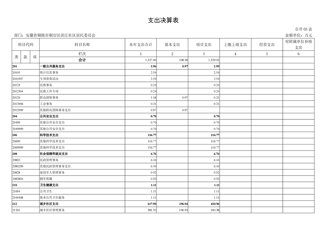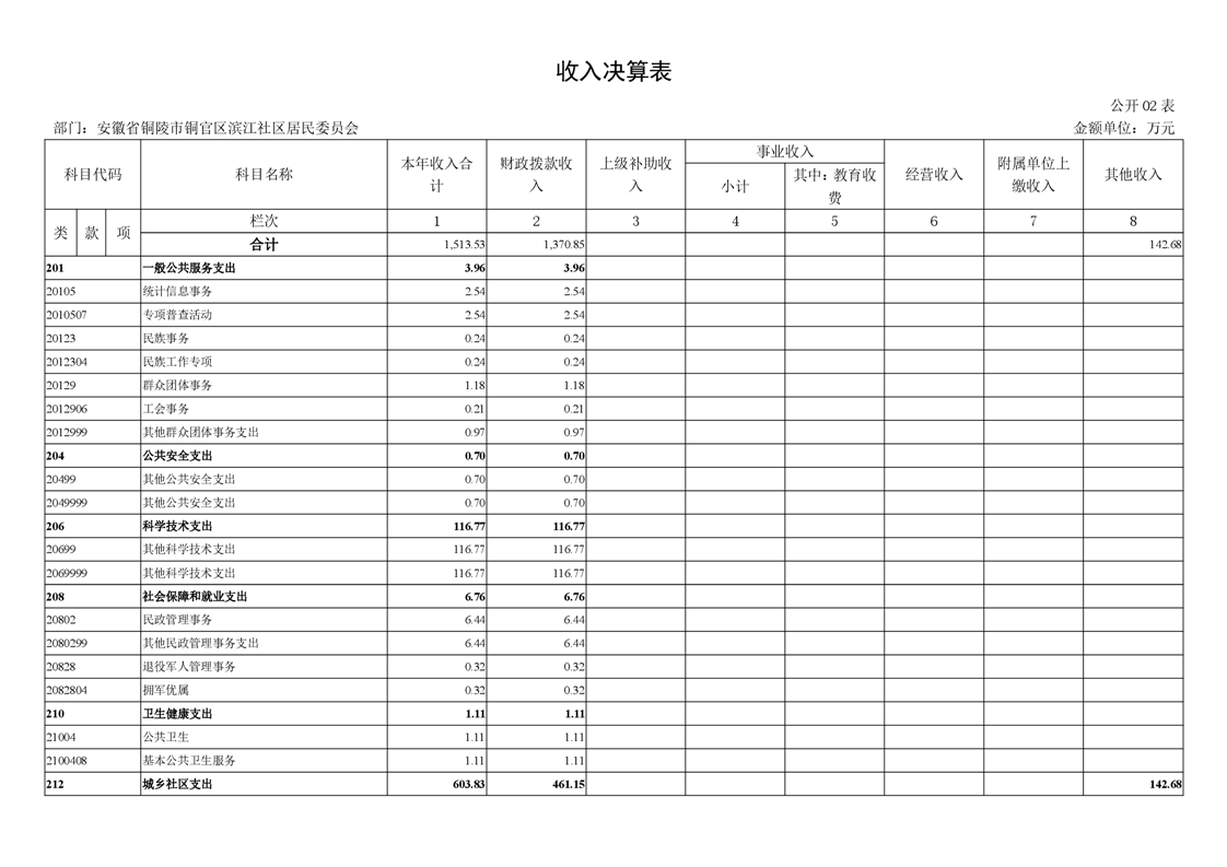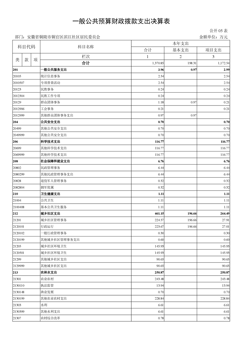 铜陵市铜官区滨江社区居民委员会2024年度部门决算-铜官区人民政府