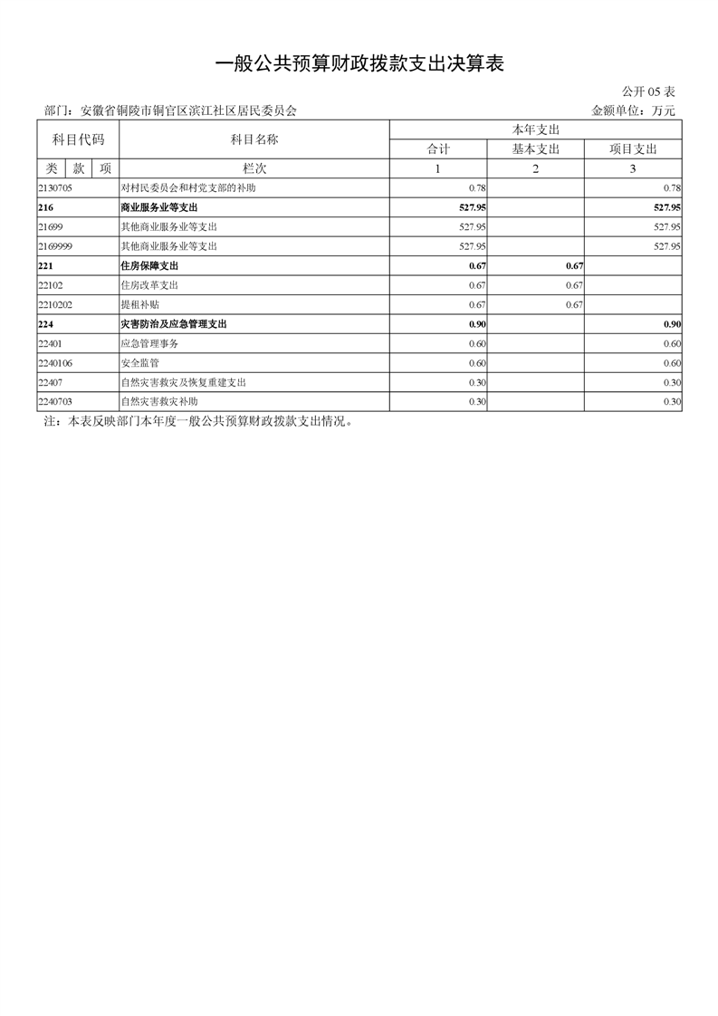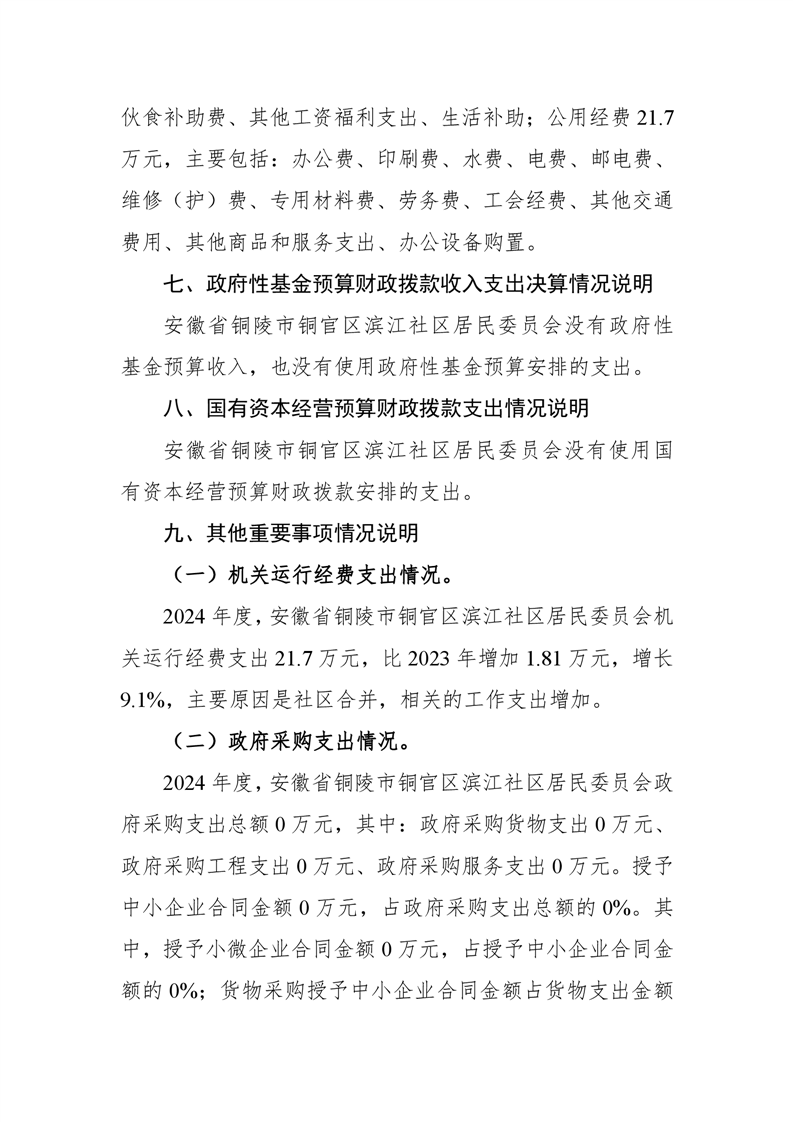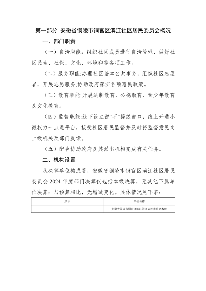 铜陵市铜官区滨江社区居民委员会2024年度部门决算