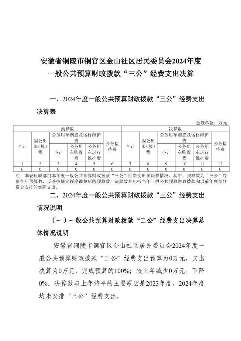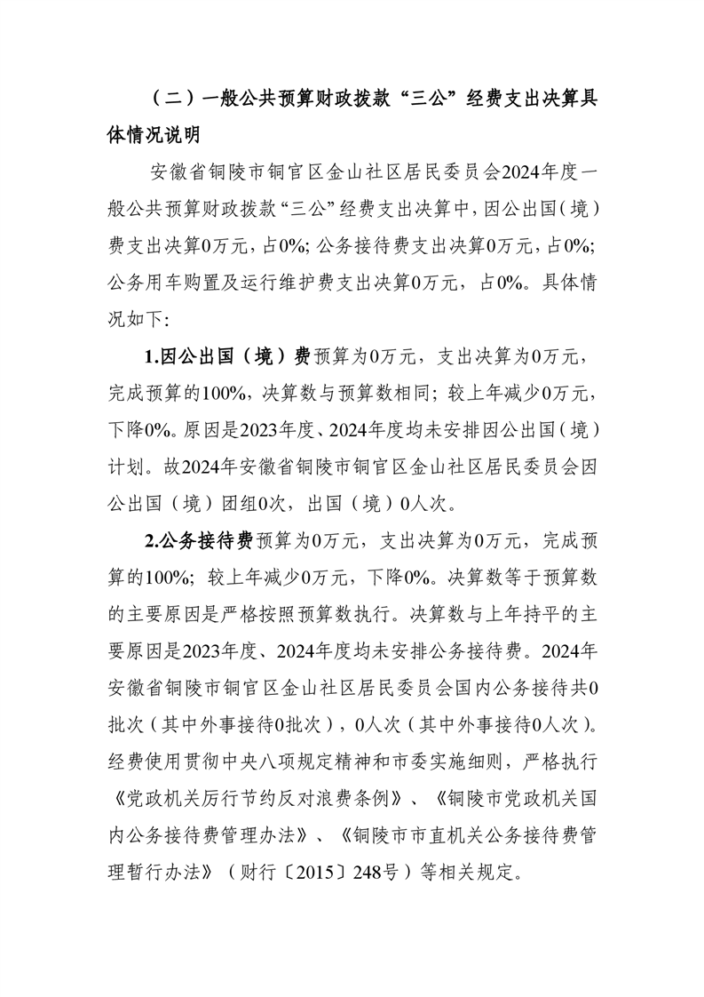 铜陵市铜官区金山社区居民委员会2024年三公经费决算-铜官区人民政府