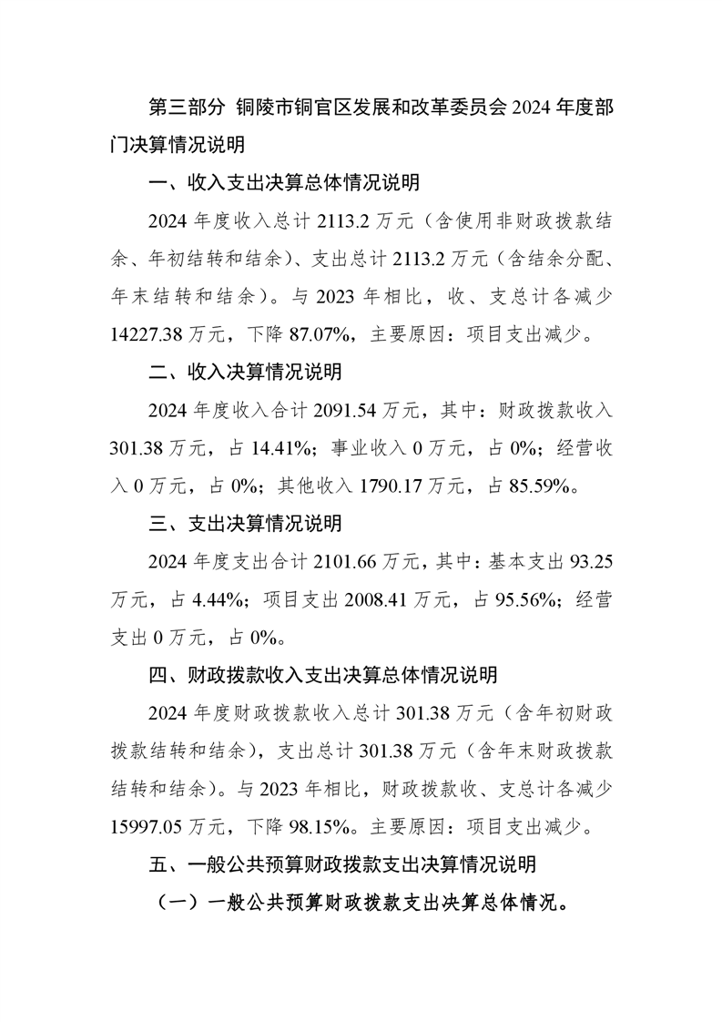 铜官区发展和改革委员会2024年度部门决算-铜官区人民政府