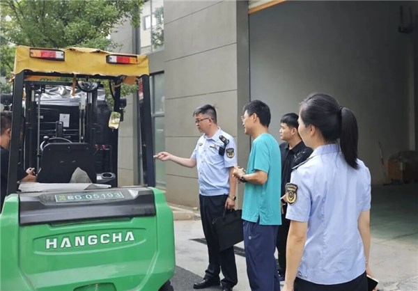 图为区市场监管局工作人员检查特种设备。