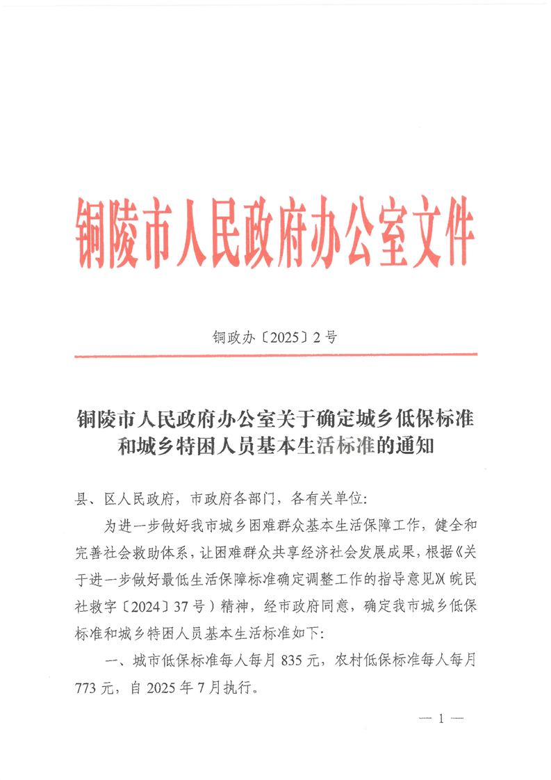 2025年关于最低生活保障标准提高标准的通知-铜官区人民政府