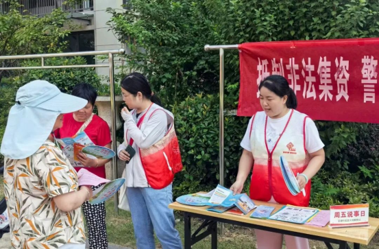 8月23日,天井湖社区在辖区内积极开展防范非法集资宣传活动, 提升居民对非法集资的识别能力和防范意识,进一步增强居民的金融安全意识。