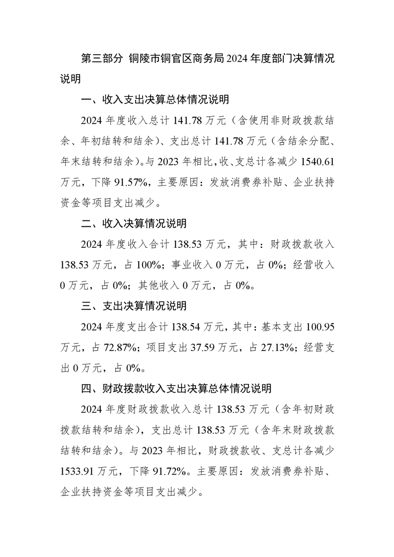 铜官区商务局2024年部门决算-铜官区人民政府