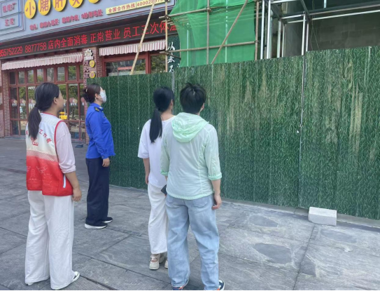 此次巡查,社区组建北斗服务站、城管队员、经发分中心、群众工作部联合巡查队伍,主要巡查酒店厨余垃圾卫生、油烟,周围环境和店铺装修现场环境。巡查过程中,一是针对酒店后厨垃圾乱堆放立即进行上门劝导,并通知商铺将垃圾桶加盖密封,同时督促物业保洁人员多次冲洗垃圾桶周围地面,减少异味。二是针对酒店油烟严重的,现场检查问题,对于净化池缺水的及时通知酒店添加。三是针对装修现场,巡查人员督促及时清运材料,周围设置围挡,减少粉尘和噪音,保持周边环境整洁度。酒店后方工地路面出口处,物业保安随时冲洗路面,减少扬尘确保路面干净。四是针对周边酒店路况巡查人员同时重点关注,确保宾客进出通畅,保障人身和财产安全。