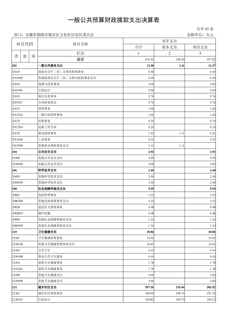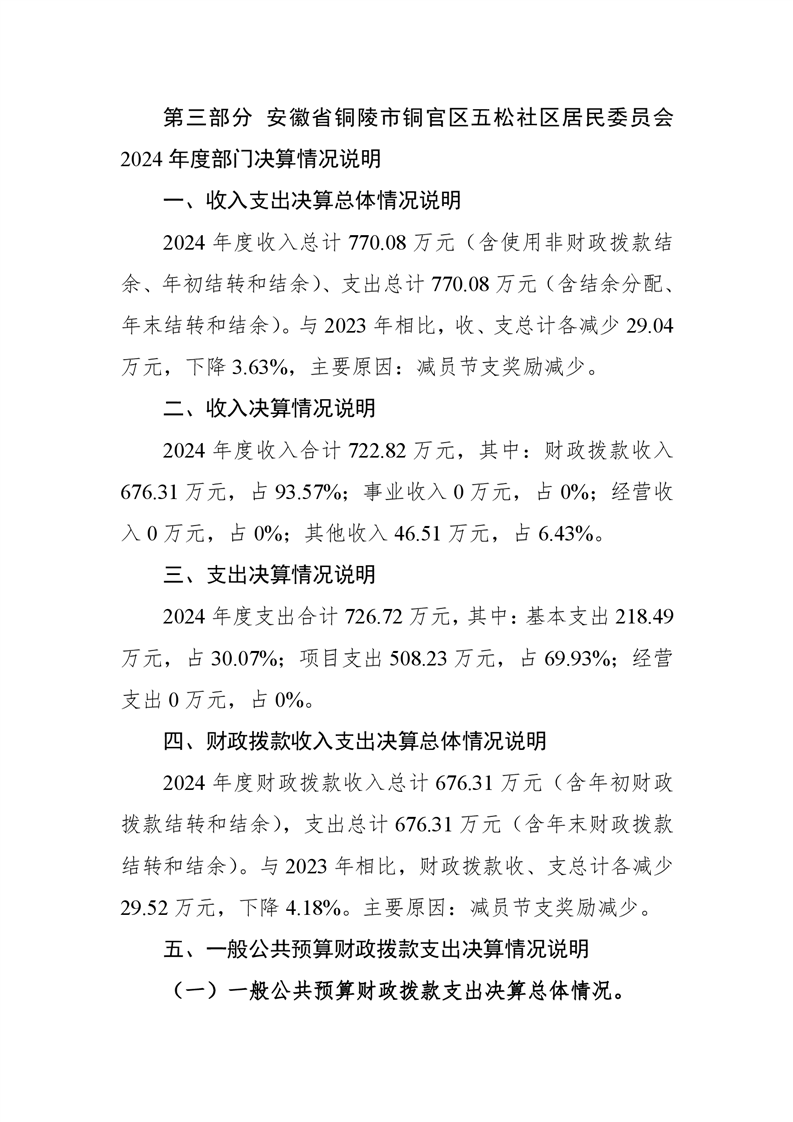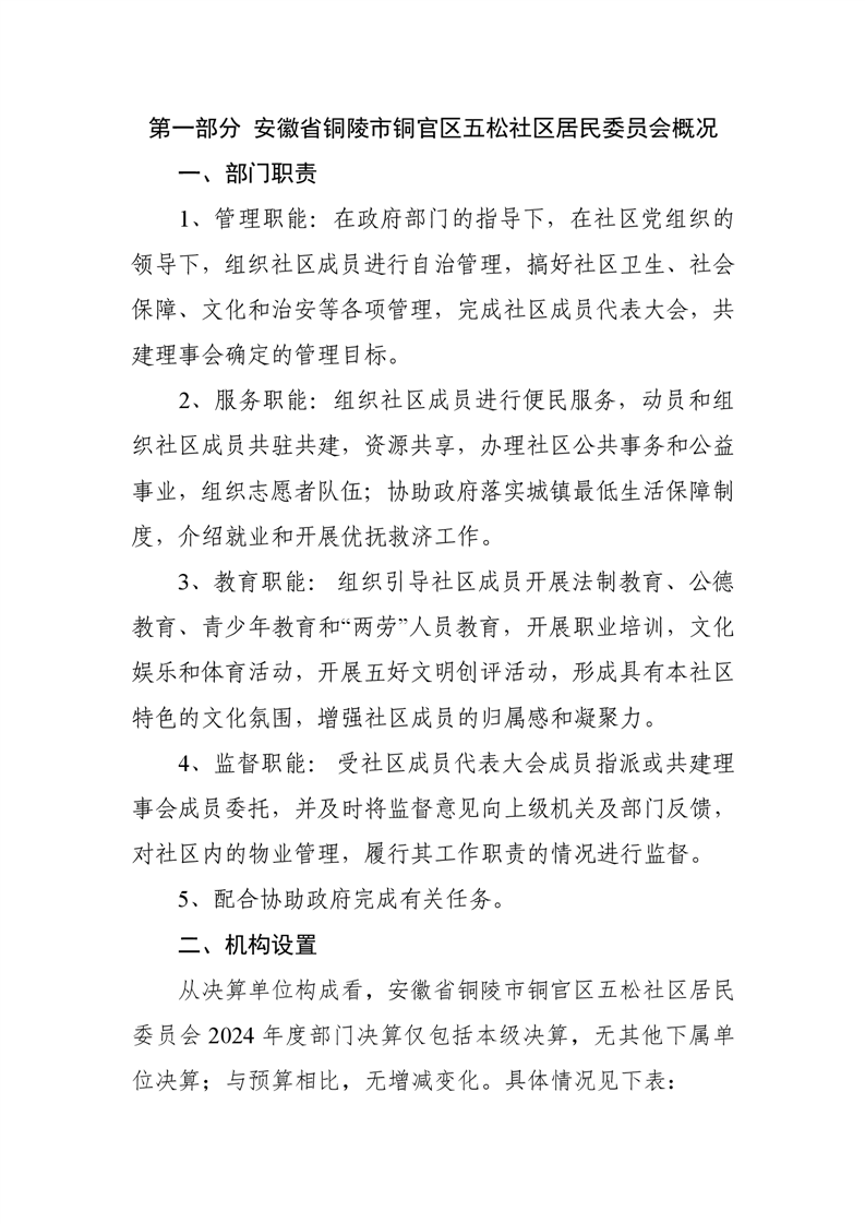 铜官区原五松社区2024年度部门决算-铜官区人民政府