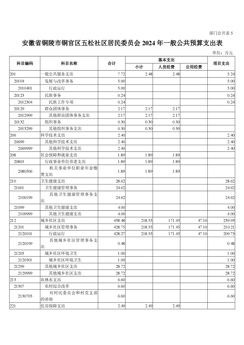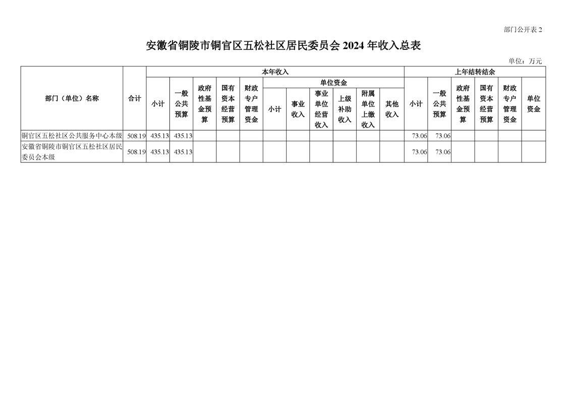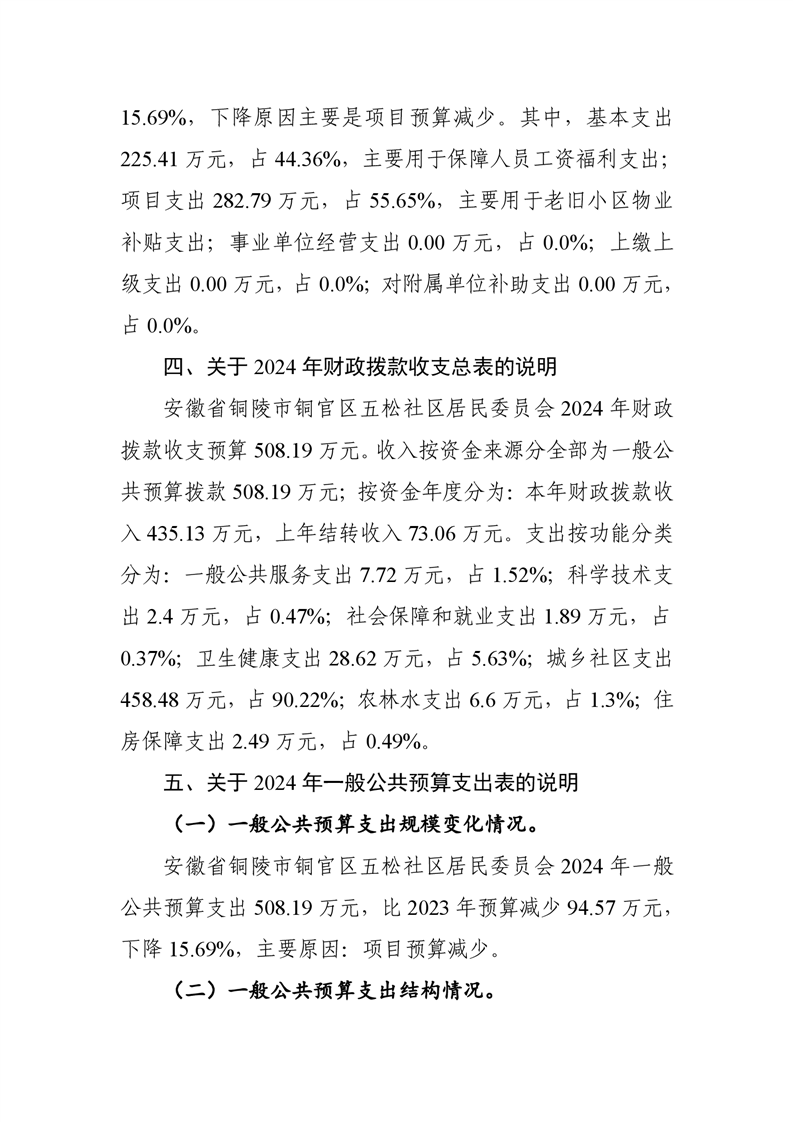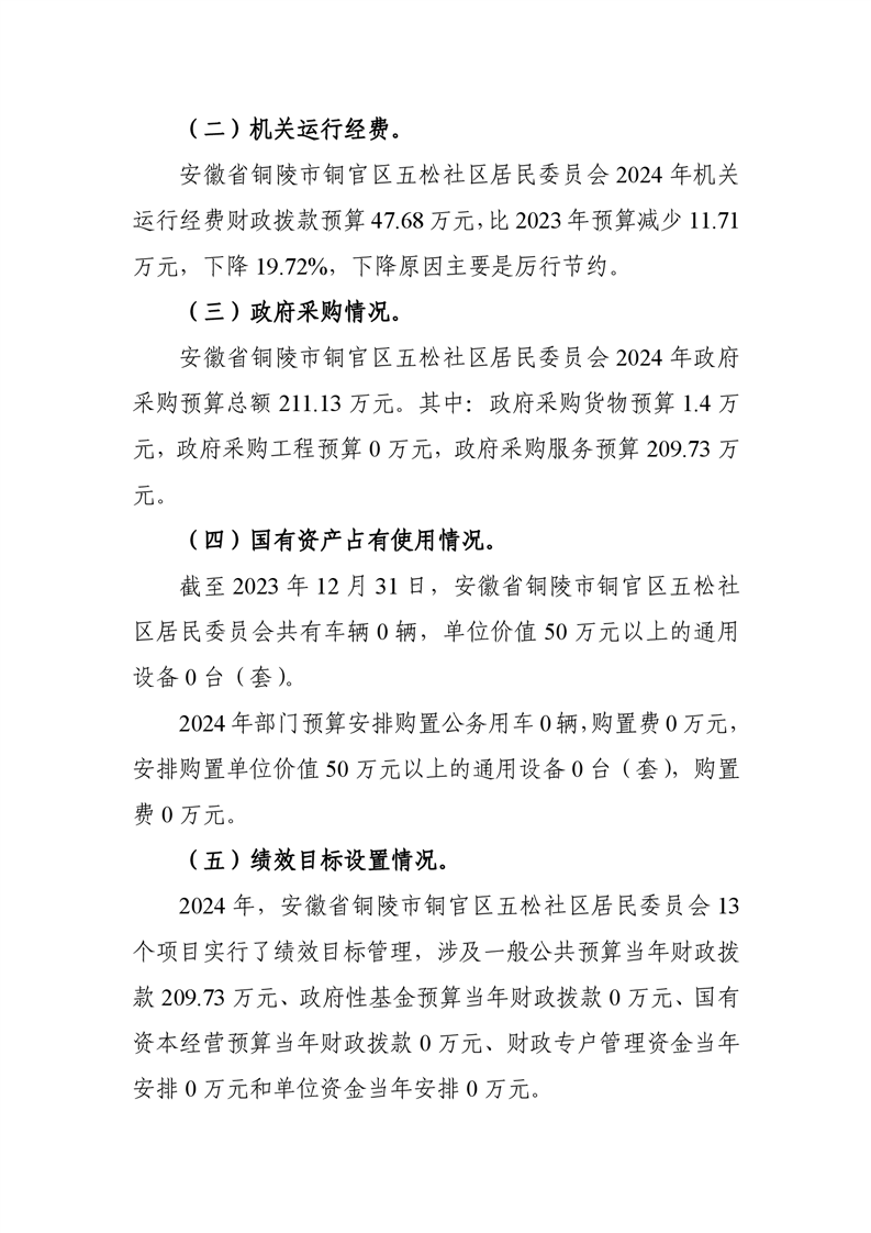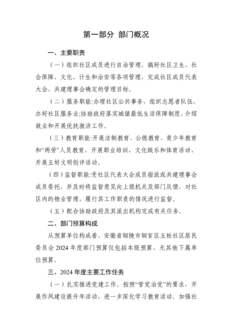 铜陵市铜官区原五松社区2024年部门预算-铜官区人民政府