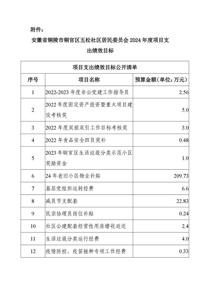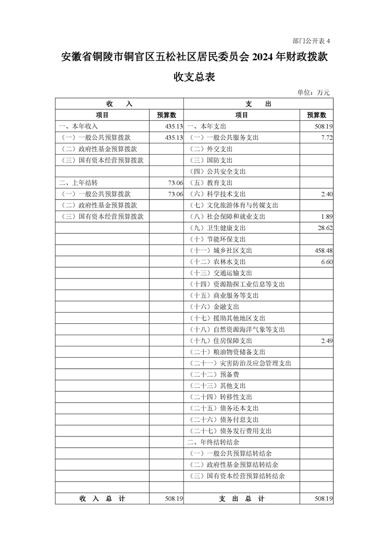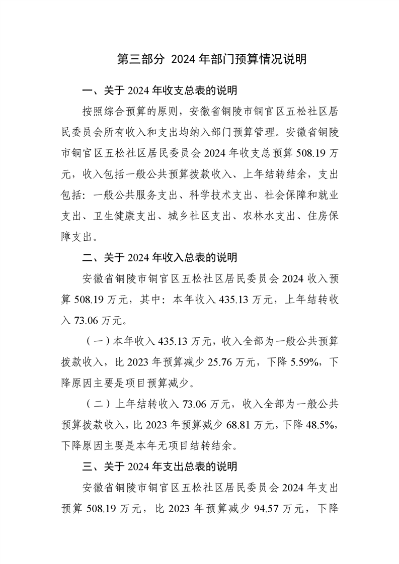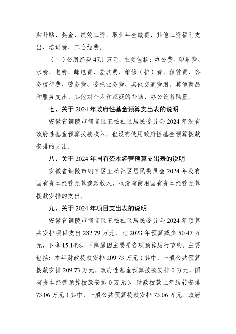铜陵市铜官区原五松社区2024年部门预算-铜官区人民政府