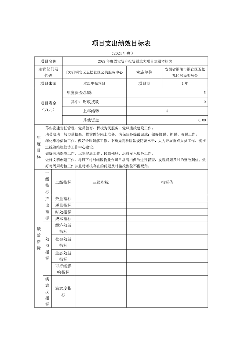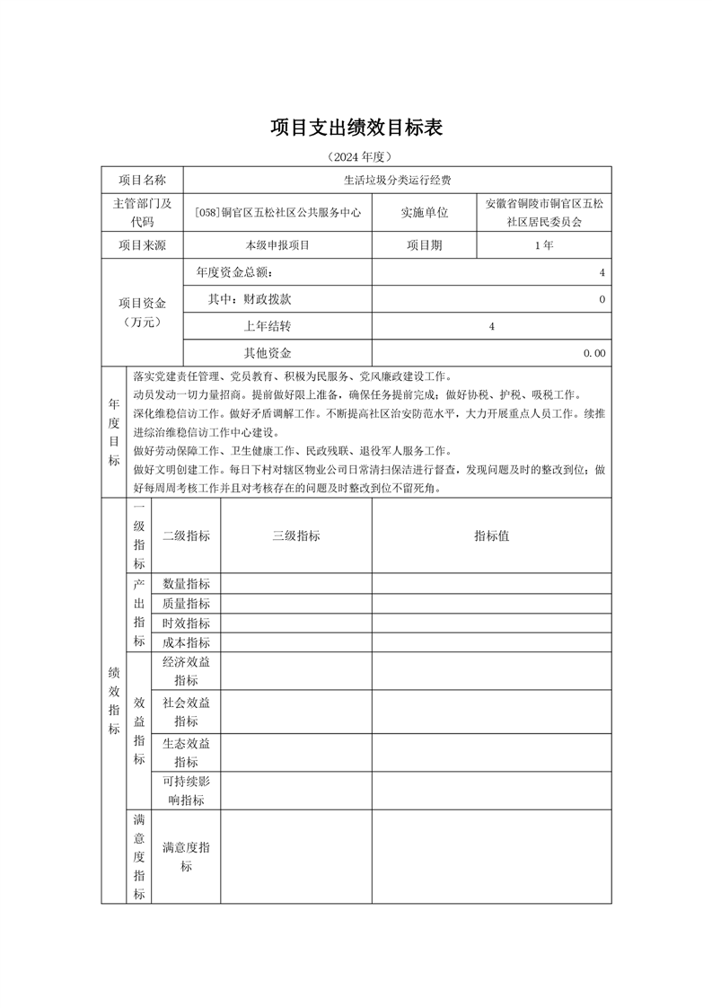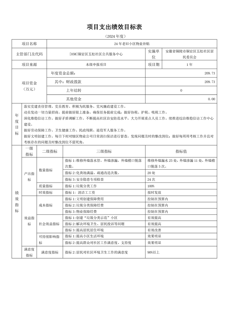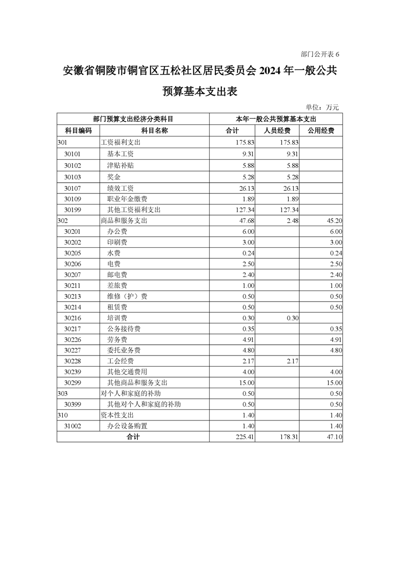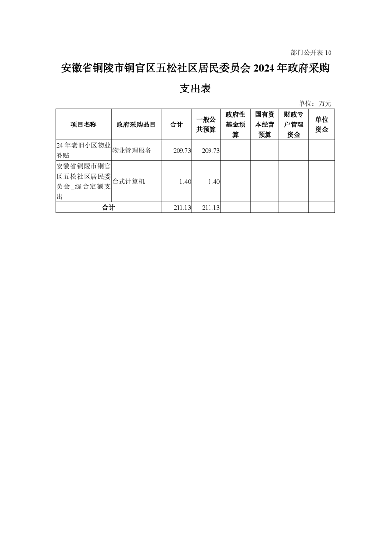 铜陵市铜官区原五松社区2024年部门预算-铜官区人民政府