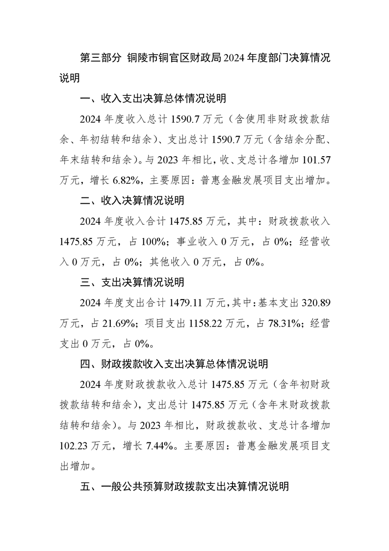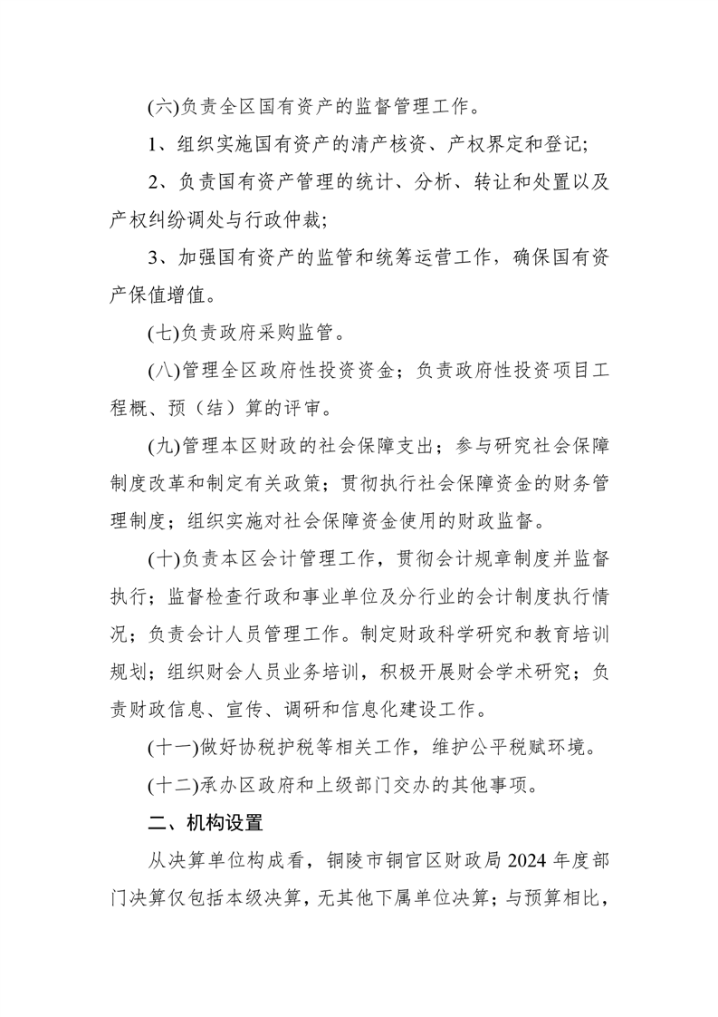 铜陵市铜官区财政局2024年度部门决算-铜官区人民政府