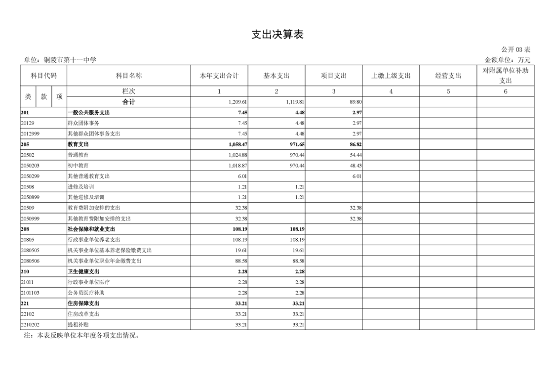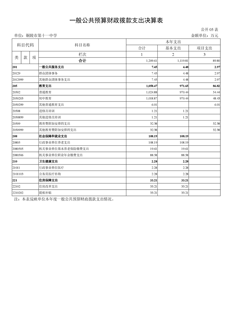 铜陵市第十一中学2024年部门决算公开