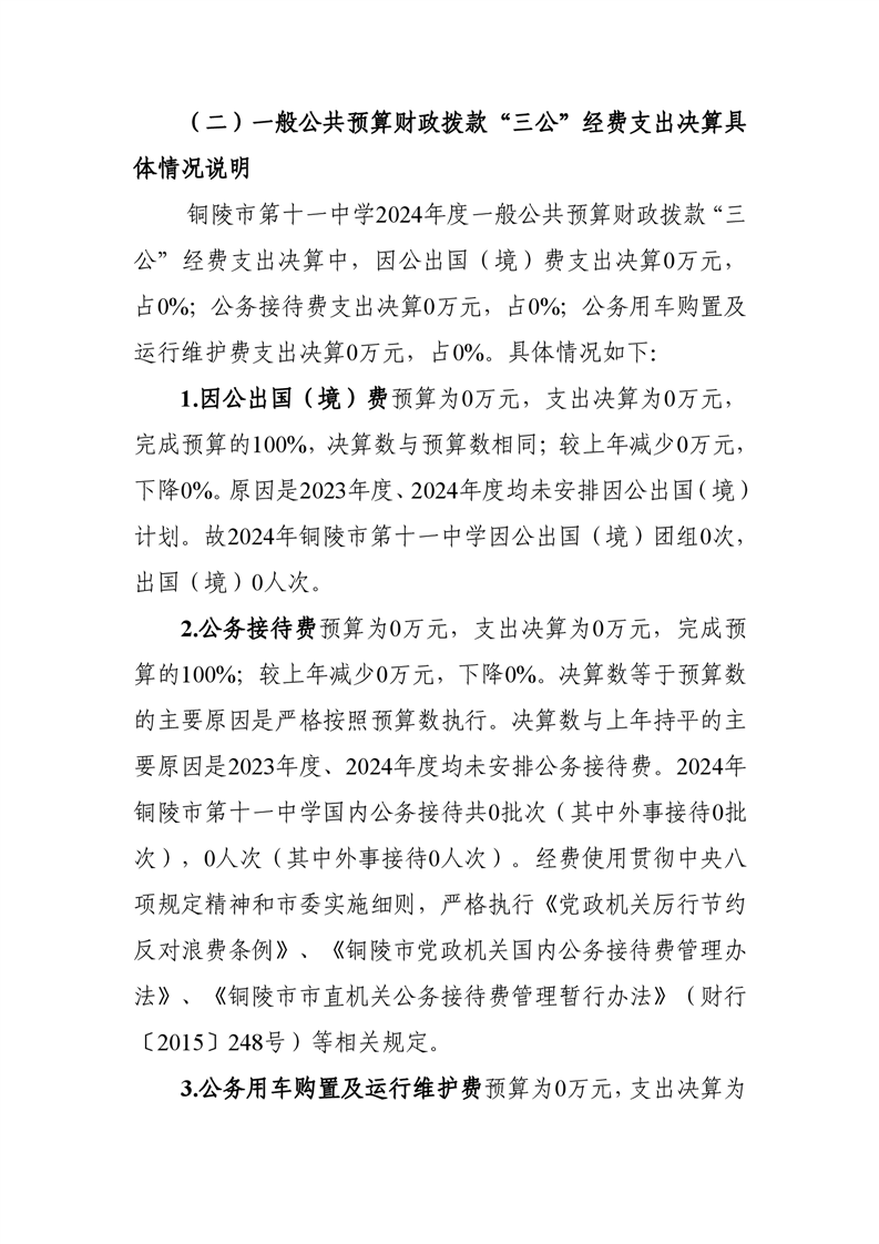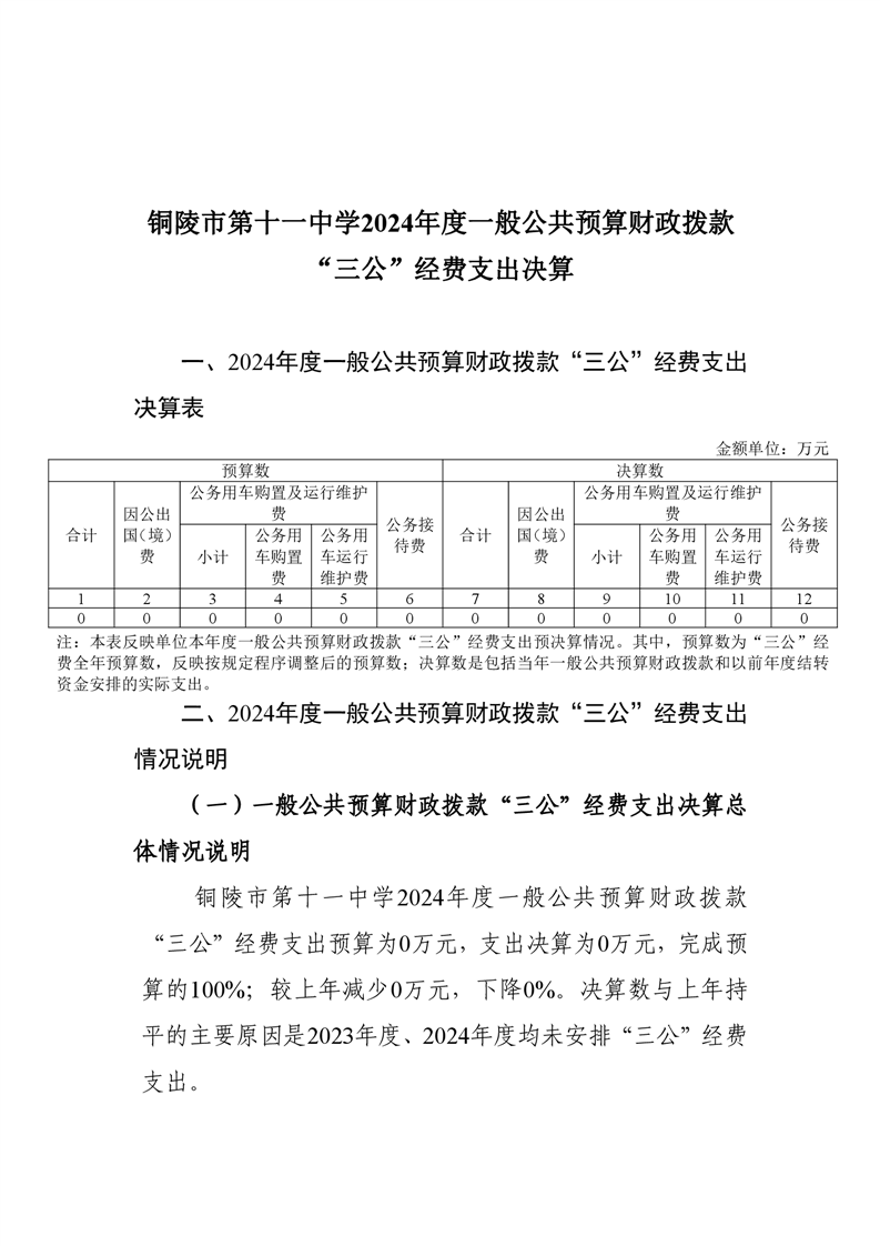 铜陵市第十一中学2024年度一般公共预算财政拨款“三公”经费支出决算-铜官区人民政府