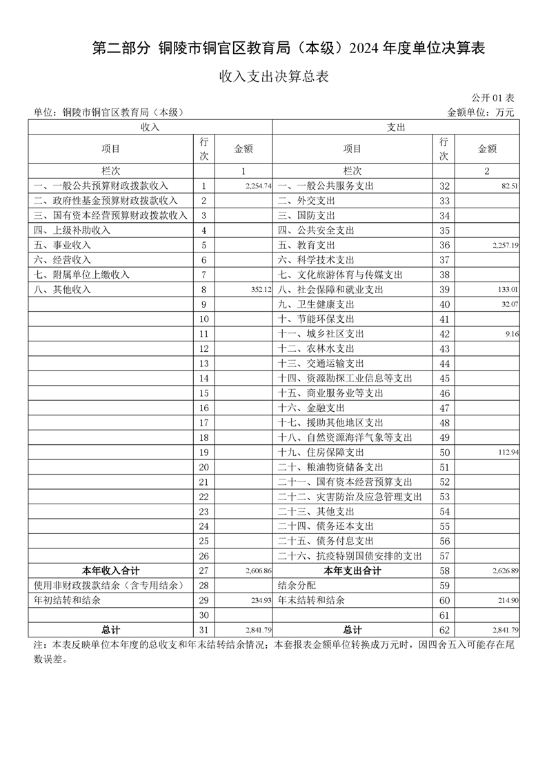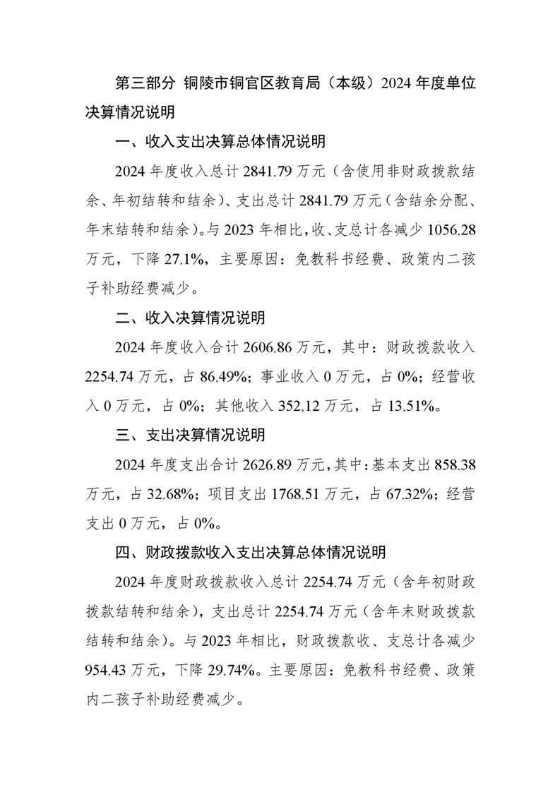铜陵市铜官区教育局(本级)2024年单位决算-铜官区人民政府