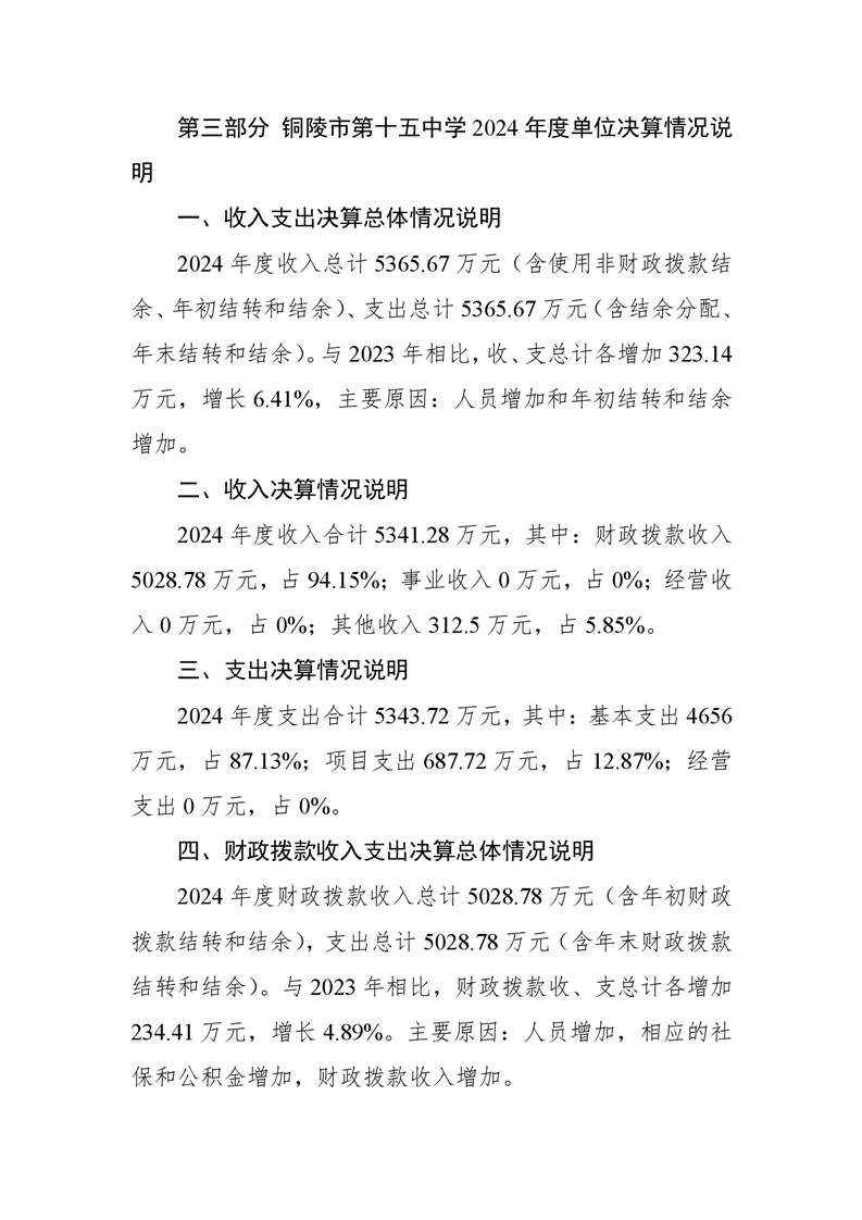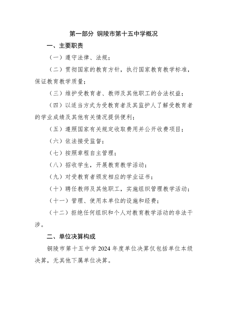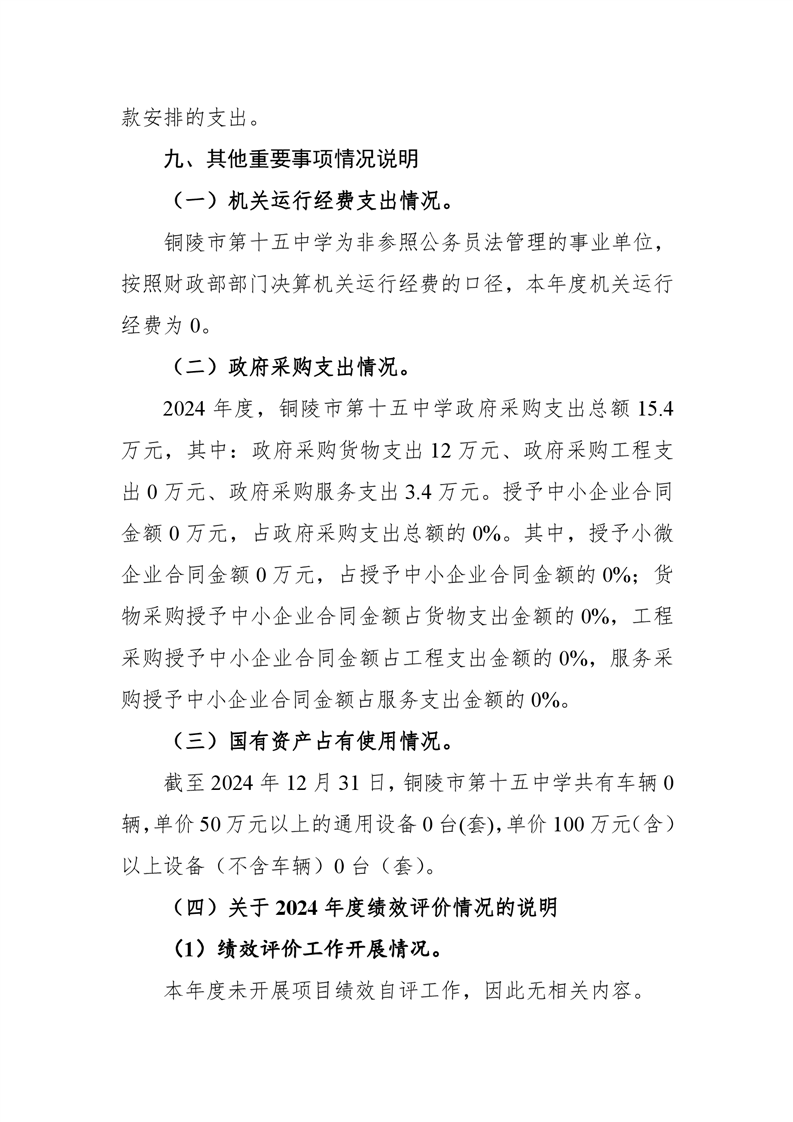 铜陵市第十五中学2024年单位决算-铜官区人民政府