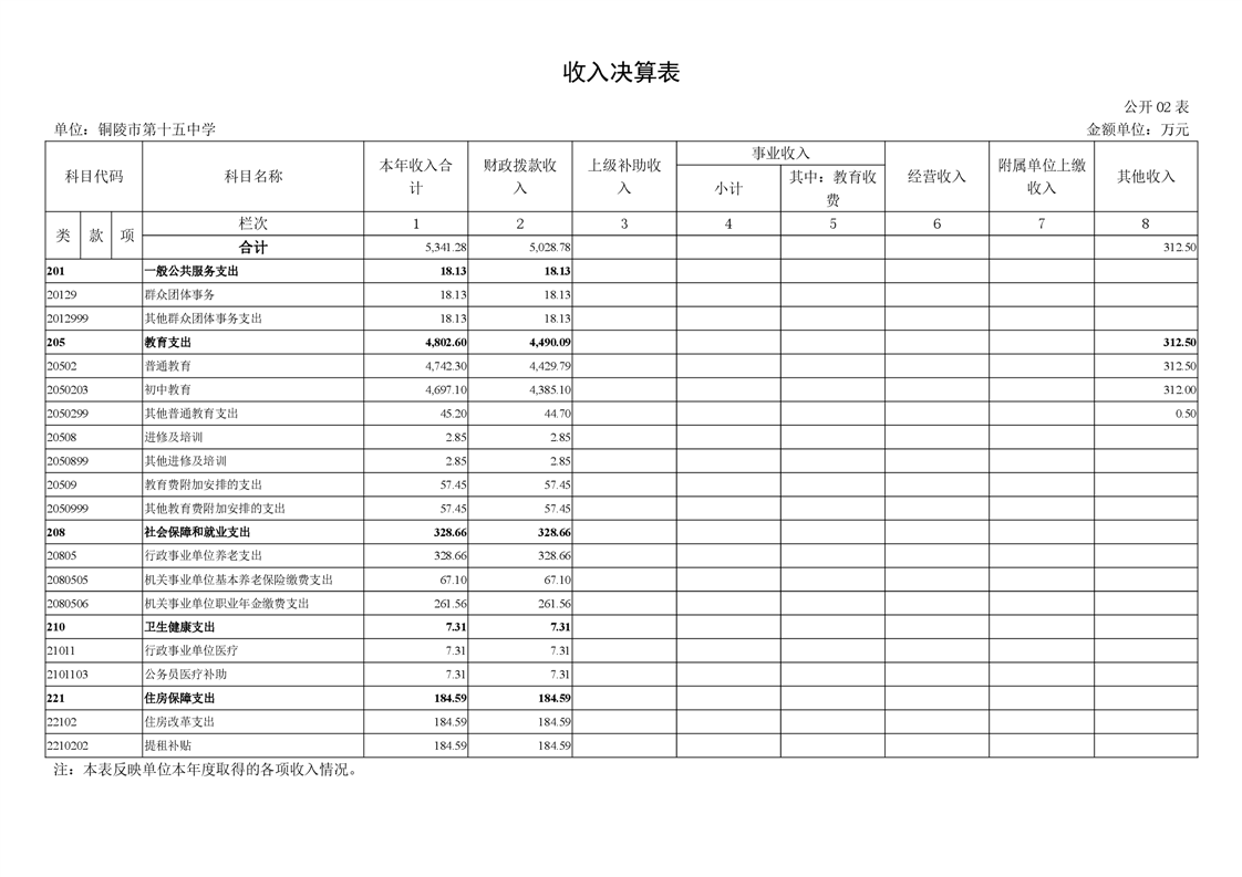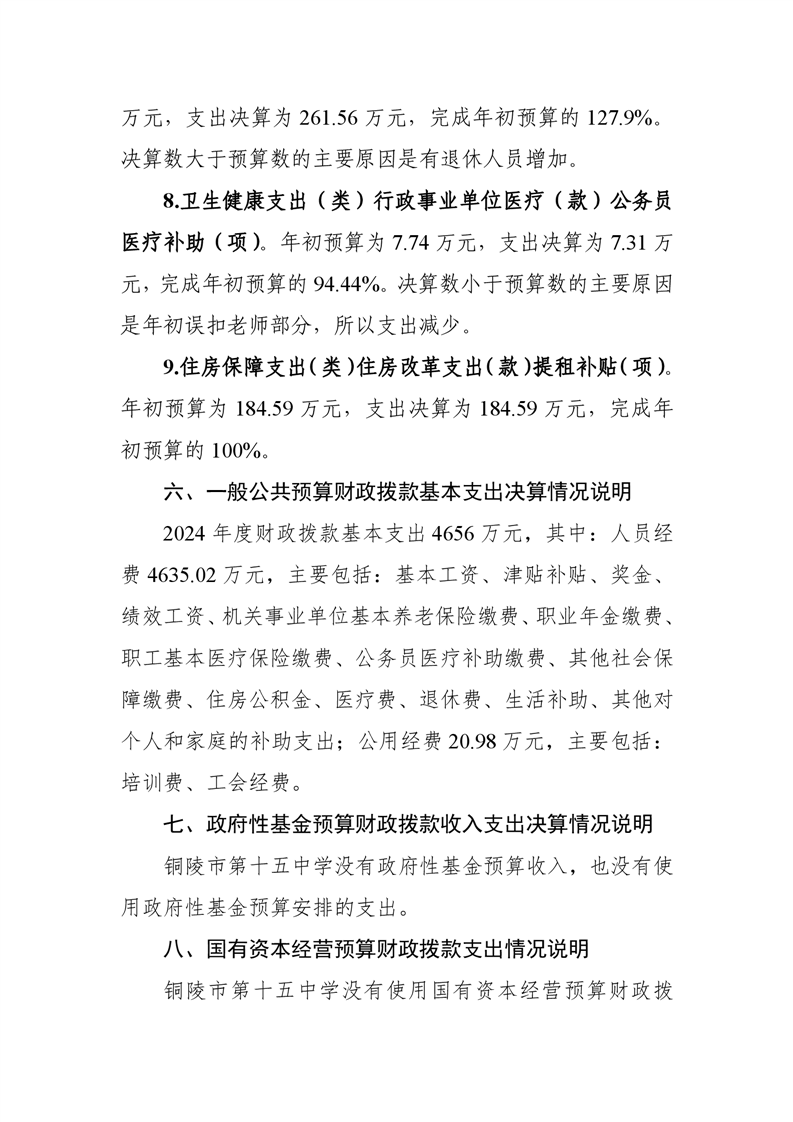 铜陵市第十五中学2024年单位决算