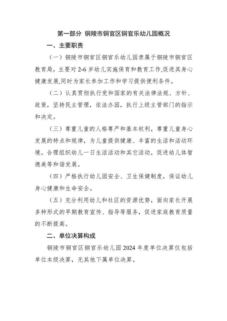 铜陵市铜官区铜官乐幼儿园2024年单位决算-铜官区人民政府