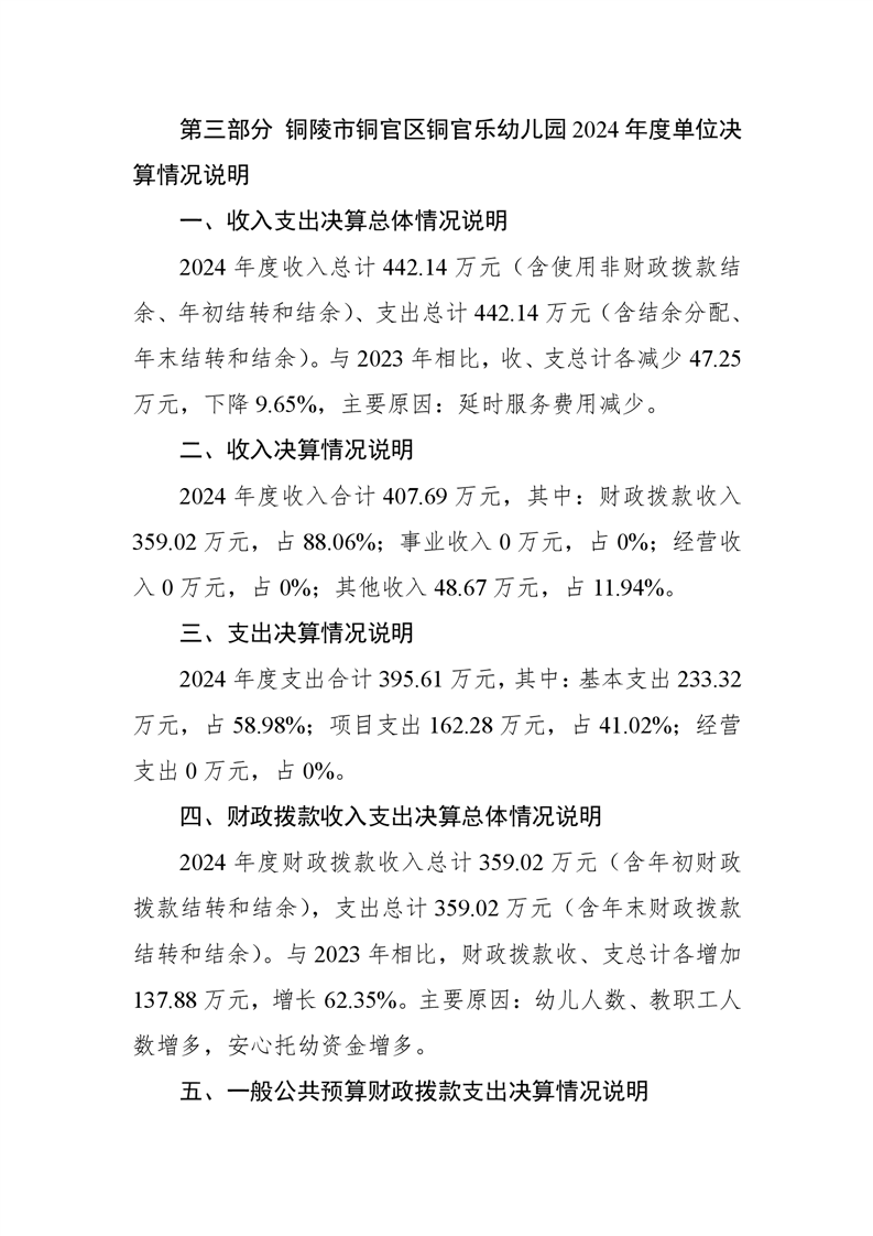 新版铜陵市铜官区铜官乐幼儿园2024年单位决算 .pdf