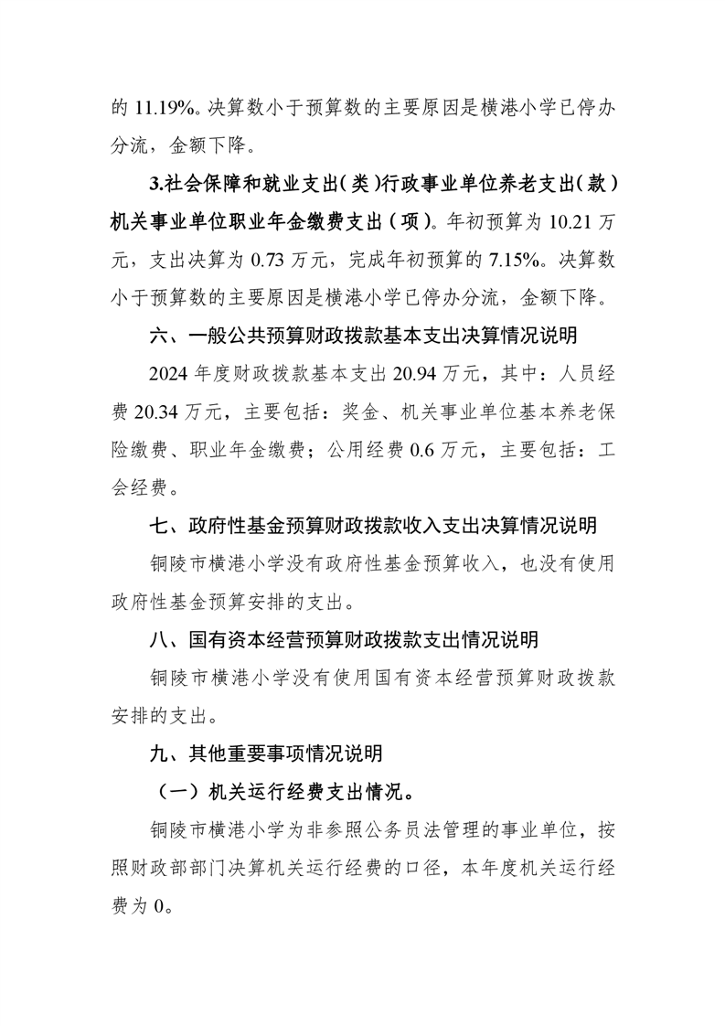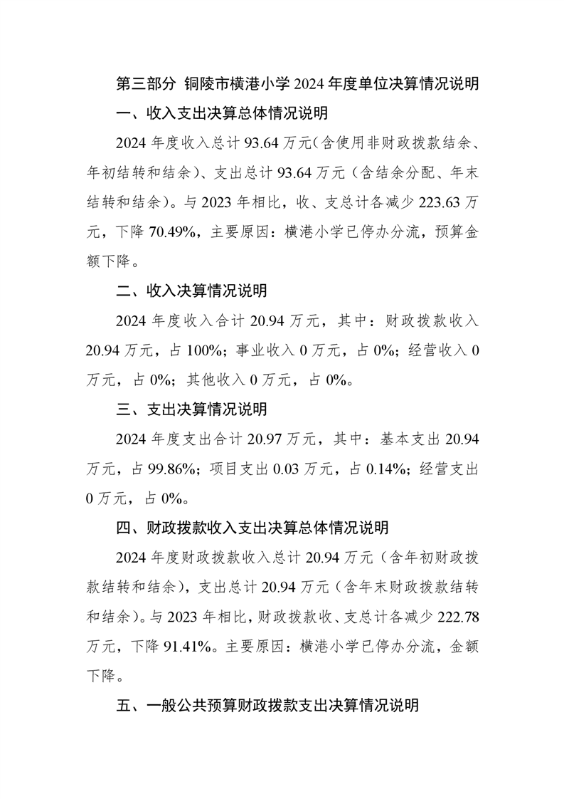 铜陵市横港小学2024年单位决算-铜官区人民政府